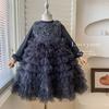 Falda larga de malla para niñas europeas y americanas, falda de princesa de cuento de hadas con mangas abullonadas para niñas, falda para actuación en el escenario del Día del Niño, nueva