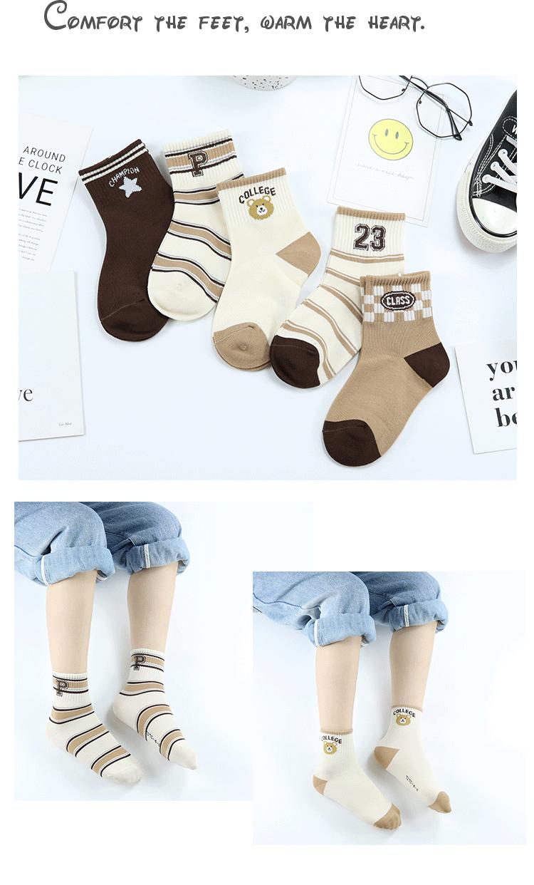 Calcetines dobles para niños otoño e invierno Nuevo estilo coreano calcetines digitales de media caña algodón peinado oso calcetines deportivos calcetines de algodón sin costuras