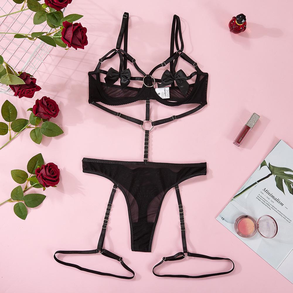 Compra Comercio exterior Europa y Estados Unidos nueva ropa interior sexy sexy lazo correa de cabestrillo perspectiva hueca tres puntos unidos amor al por mayor en Joom.pro