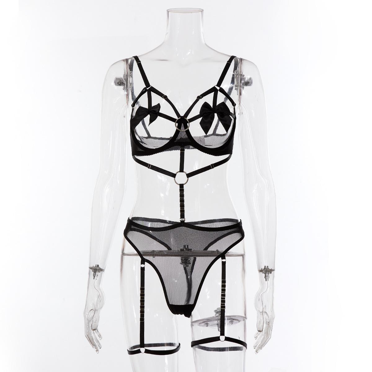 Comercio exterior Europa y Estados Unidos nueva ropa interior sexy sexy lazo correa de cabestrillo perspectiva hueca tres puntos unidos amor