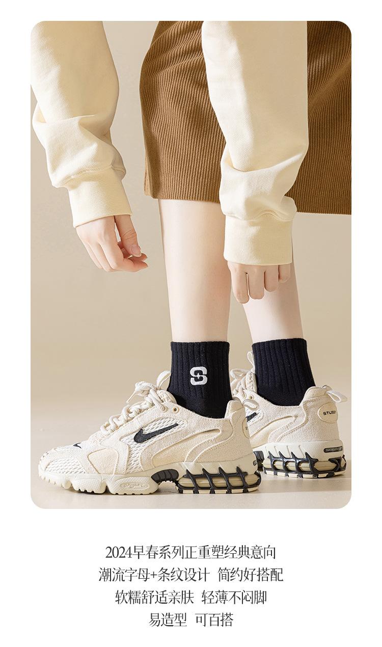 Calcetines negros de mujer, calcetines de primavera y otoño desodorantes, absorbentes del sudor, a rayas, sencillos, cortos, modernos, calcetines deportivos cortos rojos de red.