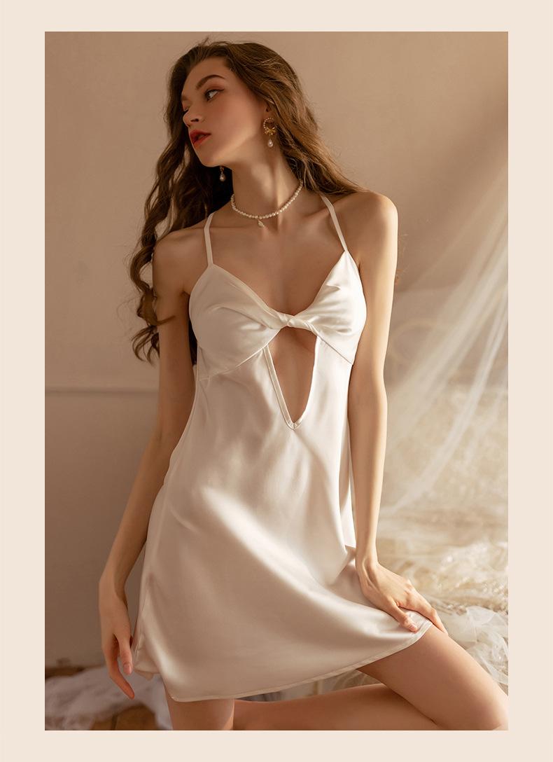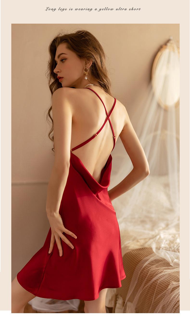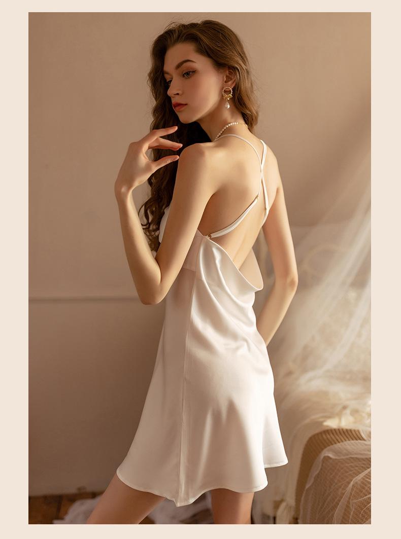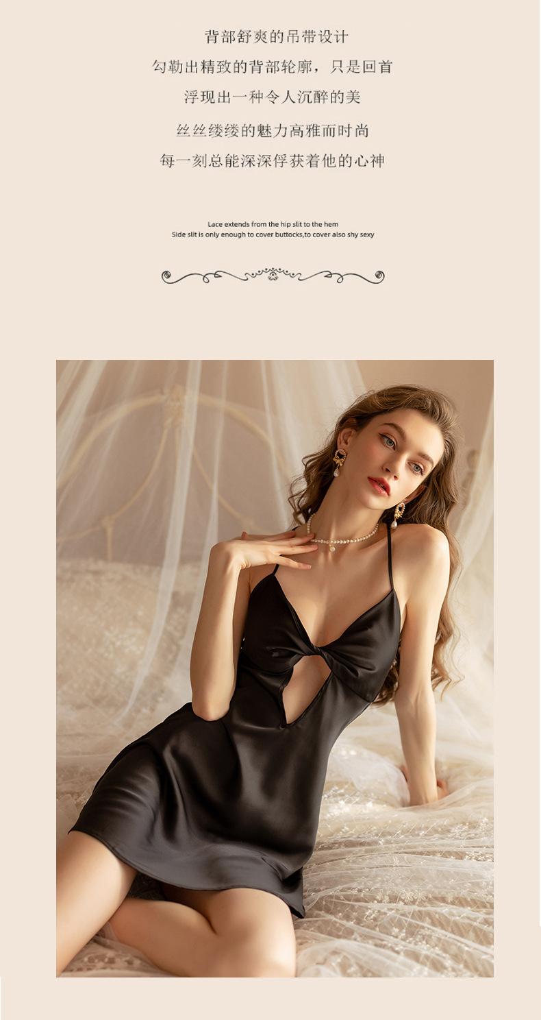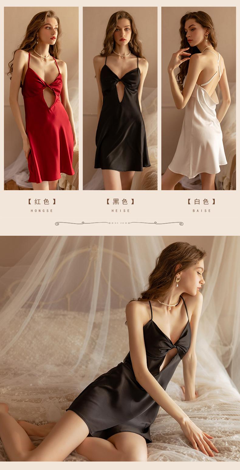 Ropa interior sexy, pijama con escote en V profundo, tentación hueca, camisón sexy de hielo, sin espalda, de seda helada, ropa interior sexy