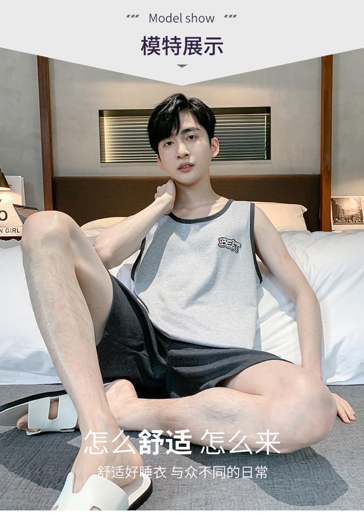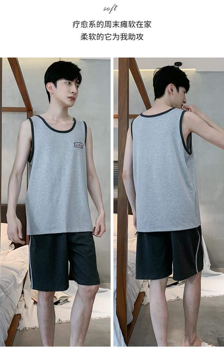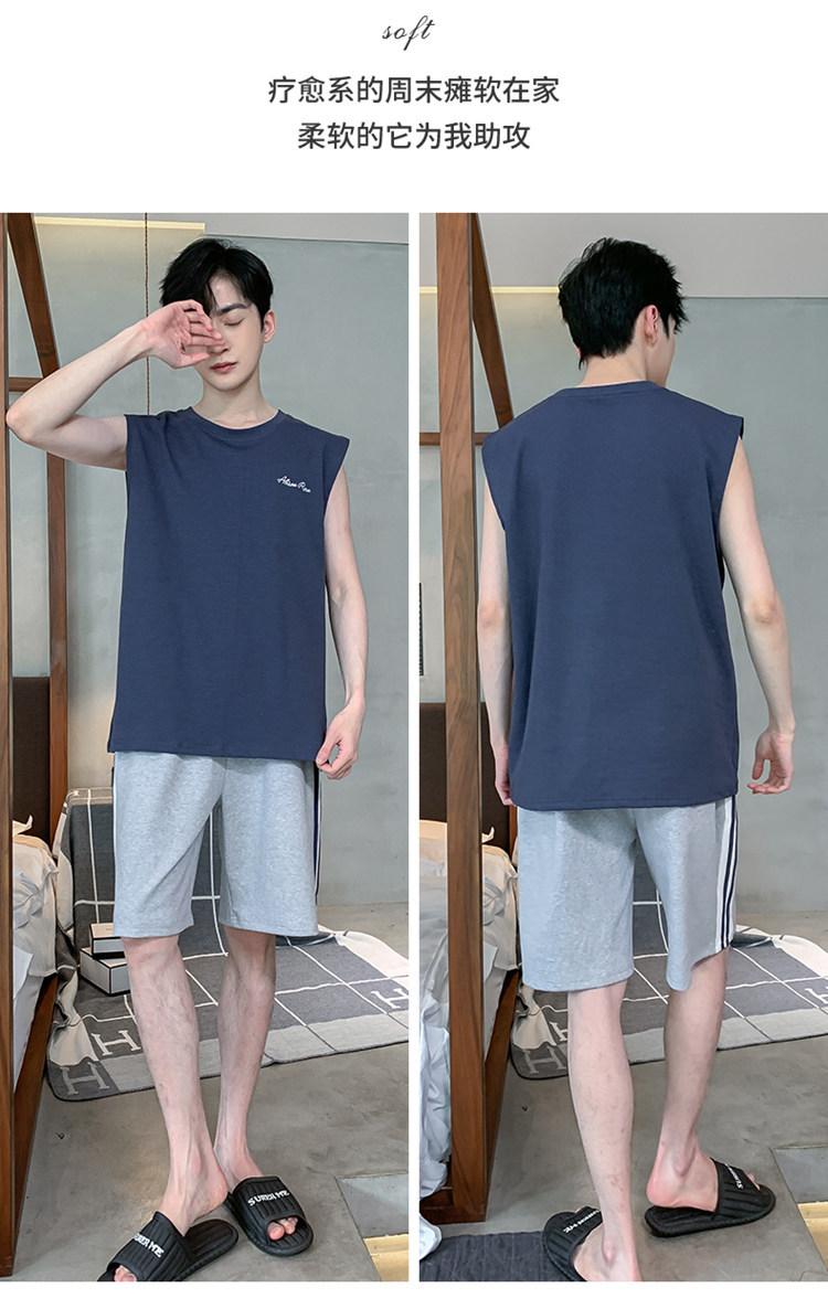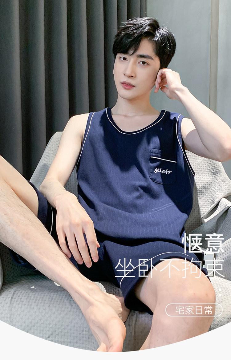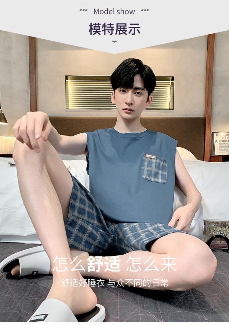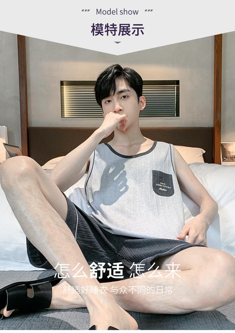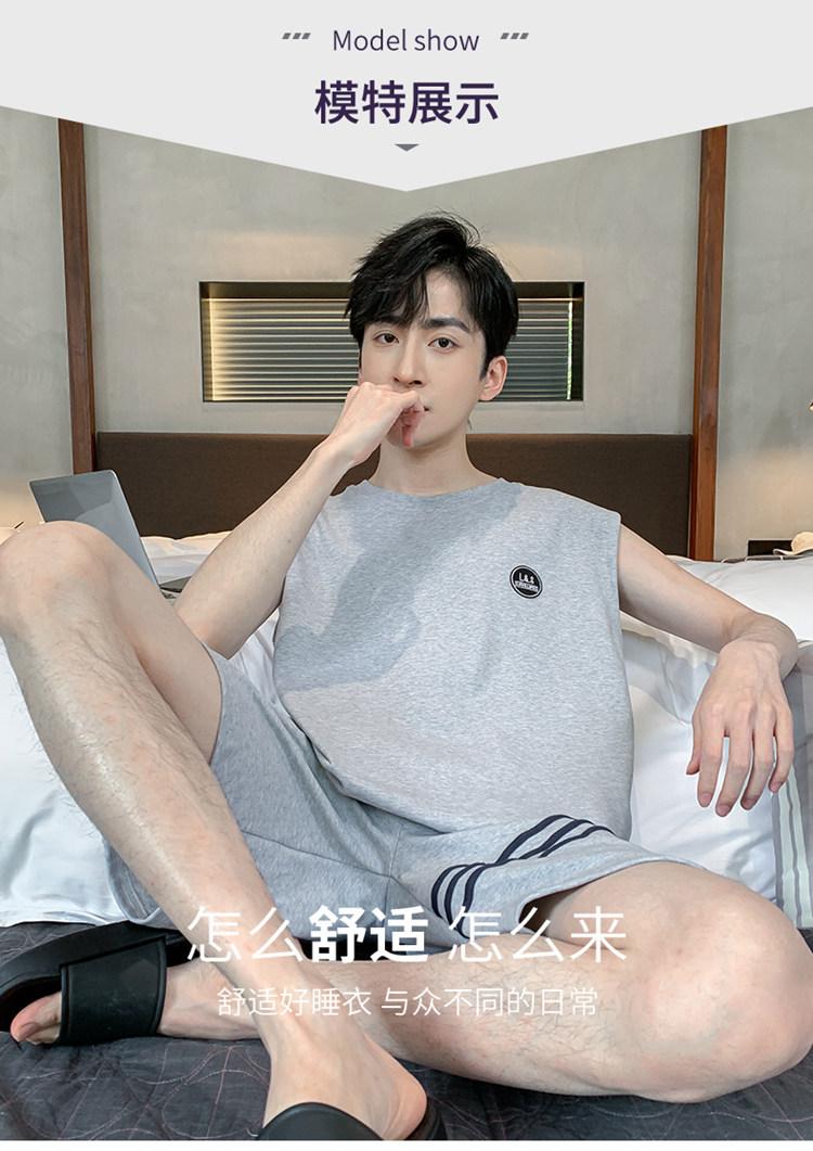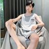 Pijama de Verano para Hombre Algodón Chaleco Shorts Delgada Sin Mangas Talla Grande para Hombre Se Puede Usar Afuera Conjunto de Ropa para el Hogar Juvenil