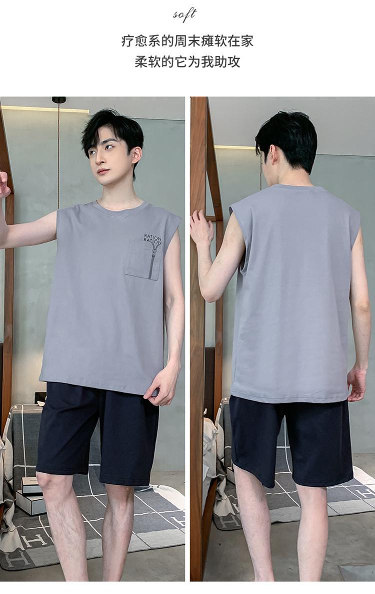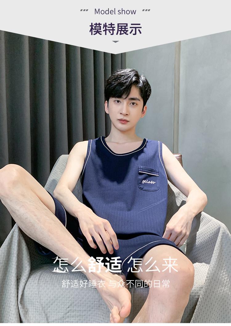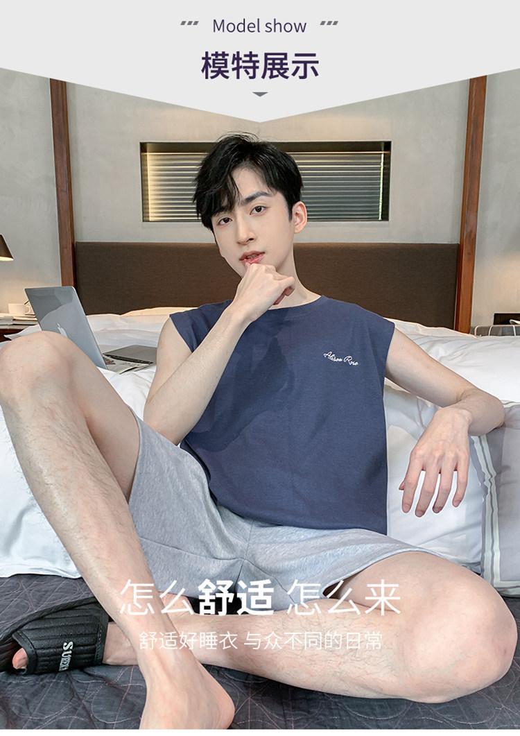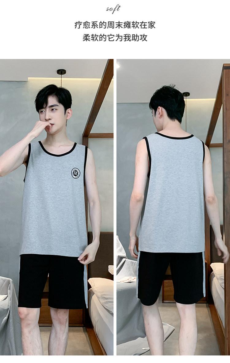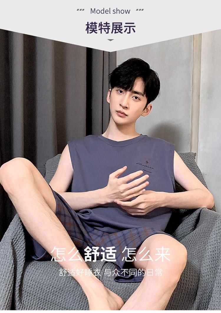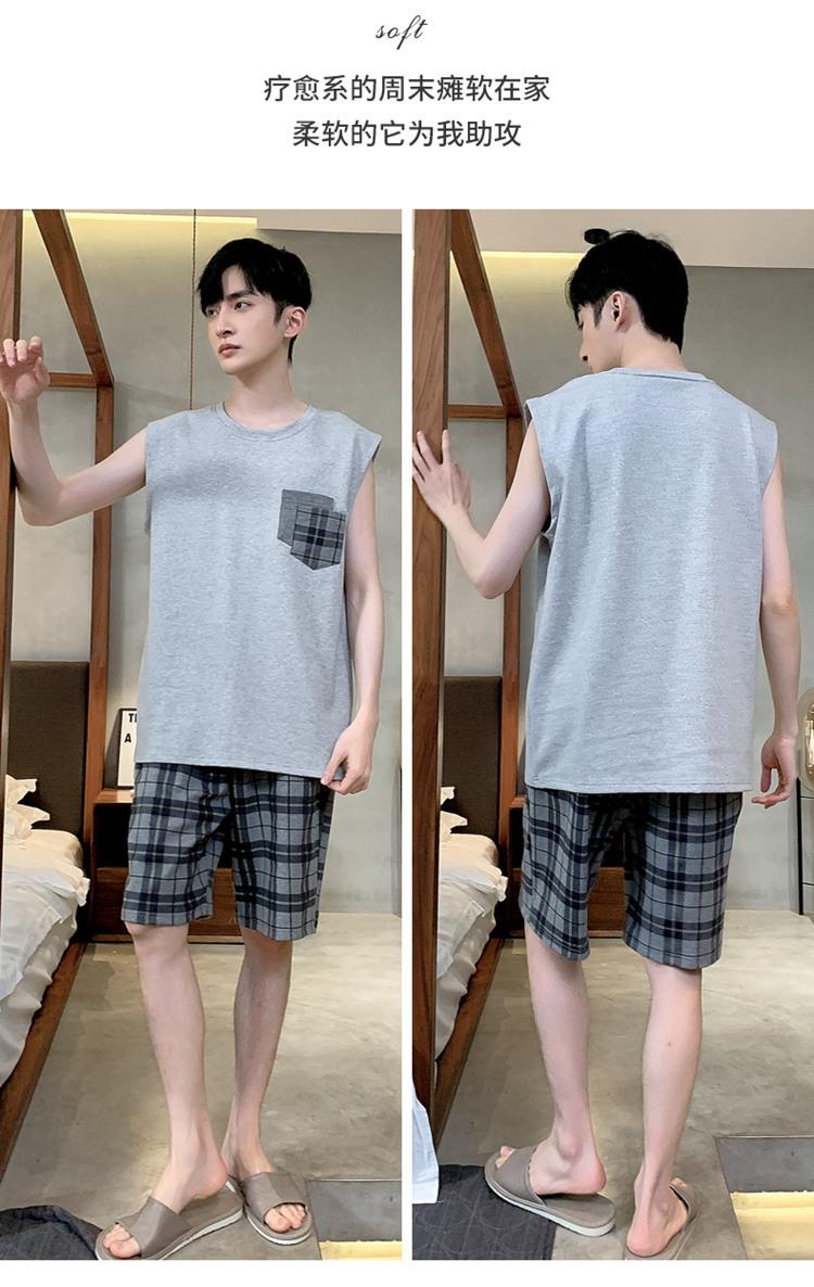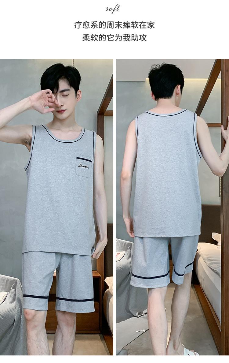 Pijama de Verano para Hombre Algodón Chaleco Shorts Delgada Sin Mangas Talla Grande para Hombre Se Puede Usar Afuera Conjunto de Ropa para el Hogar Juvenil