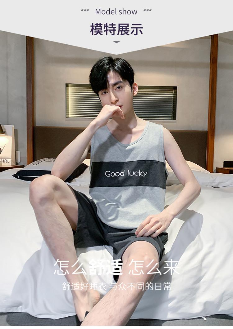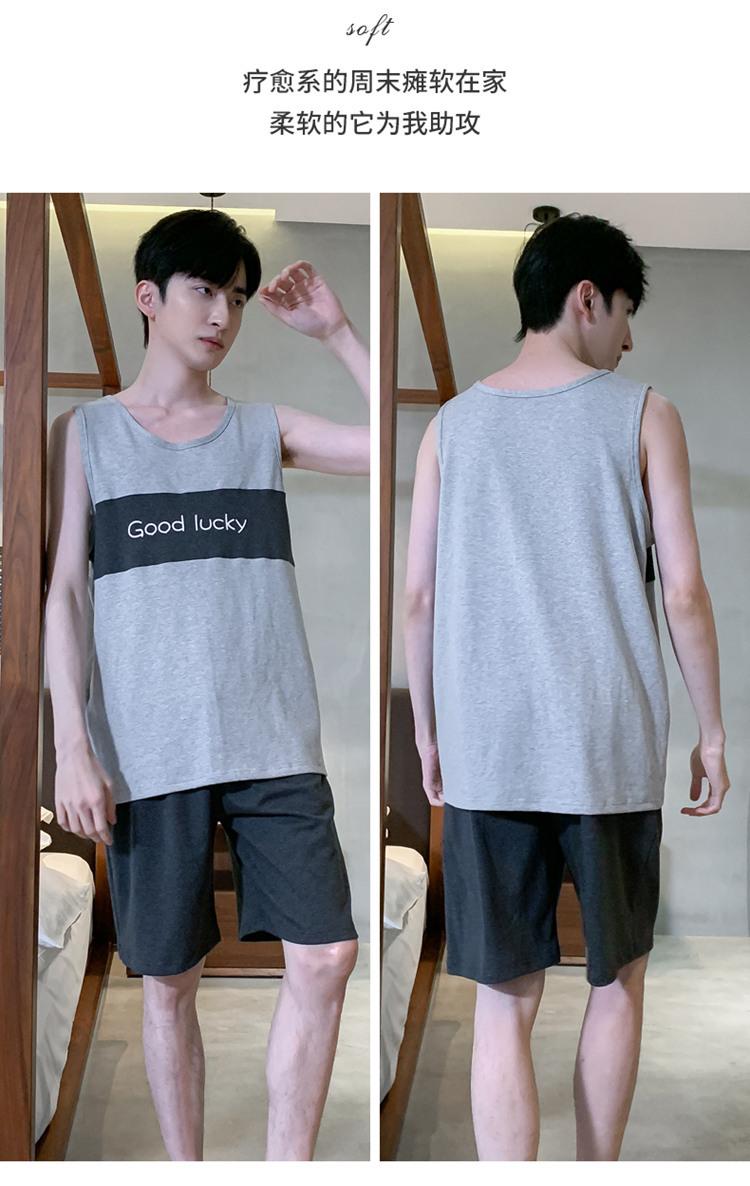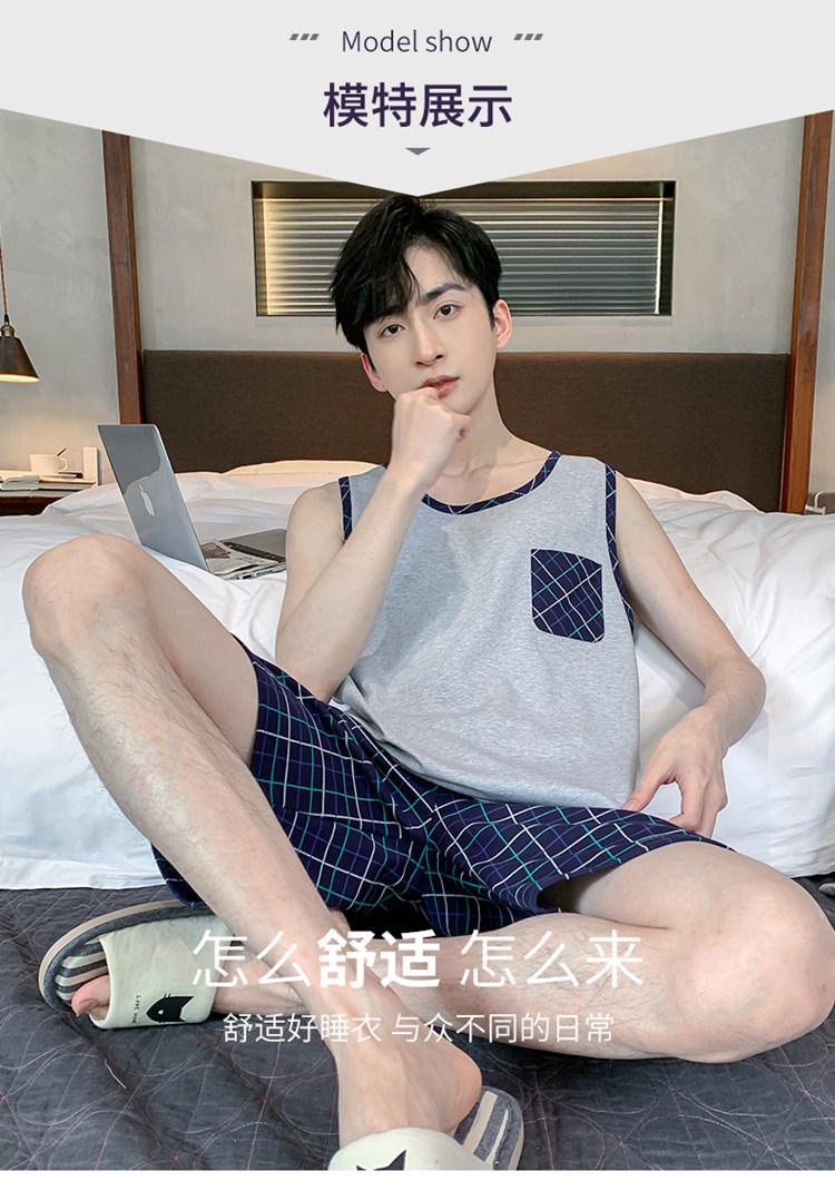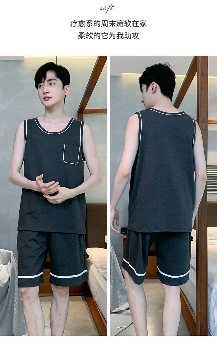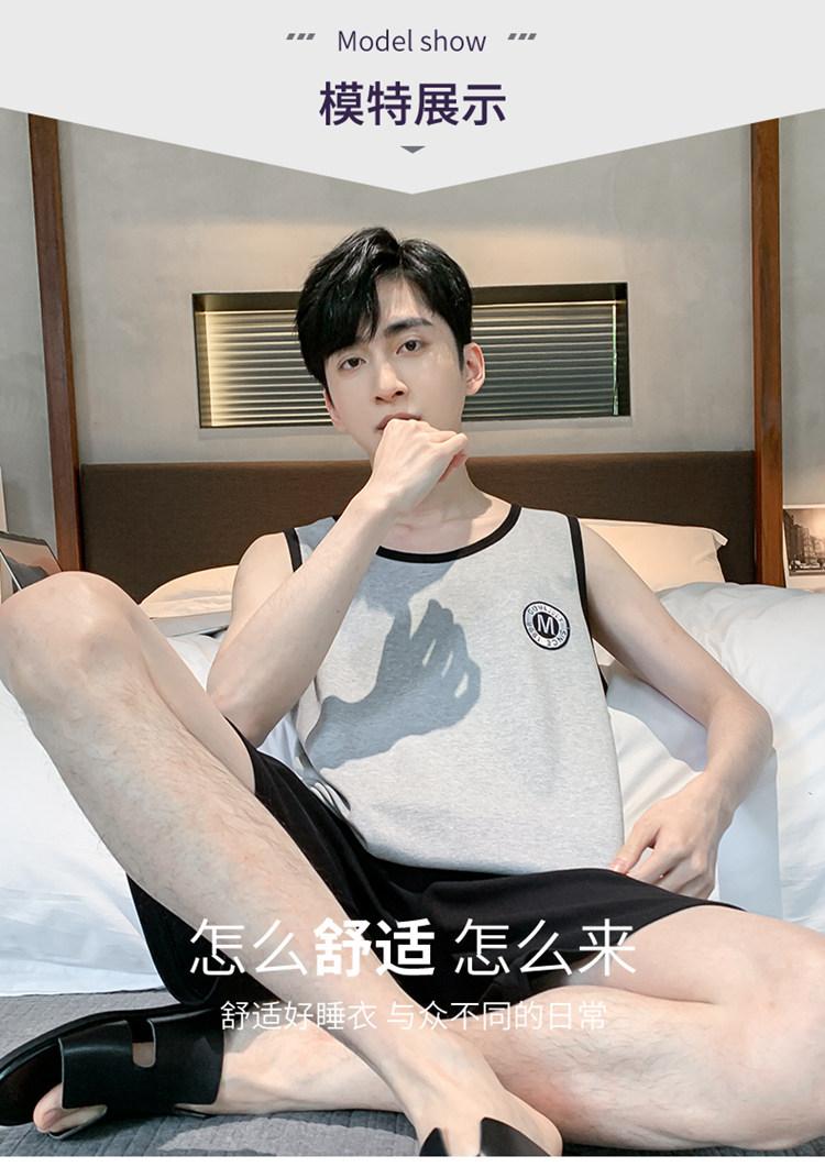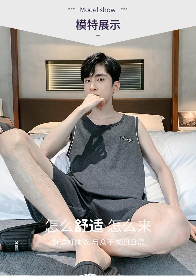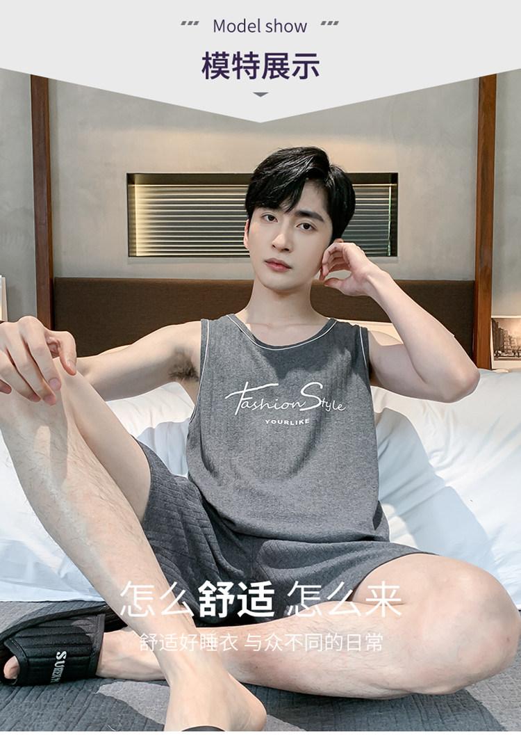 Pijama de Verano para Hombre Algodón Chaleco Shorts Delgada Sin Mangas Talla Grande para Hombre Se Puede Usar Afuera Conjunto de Ropa para el Hogar Juvenil