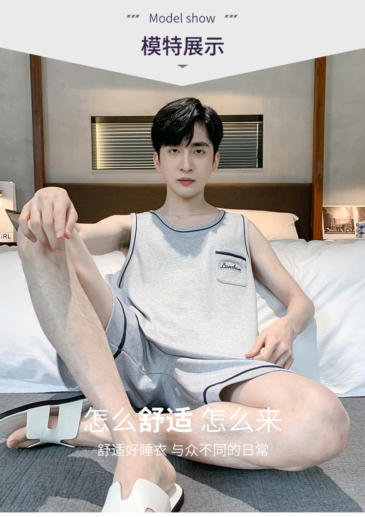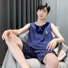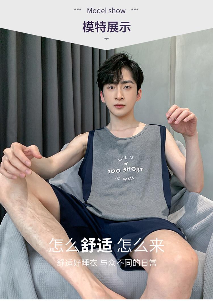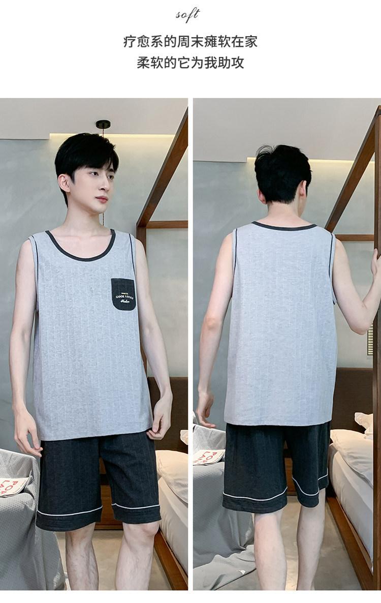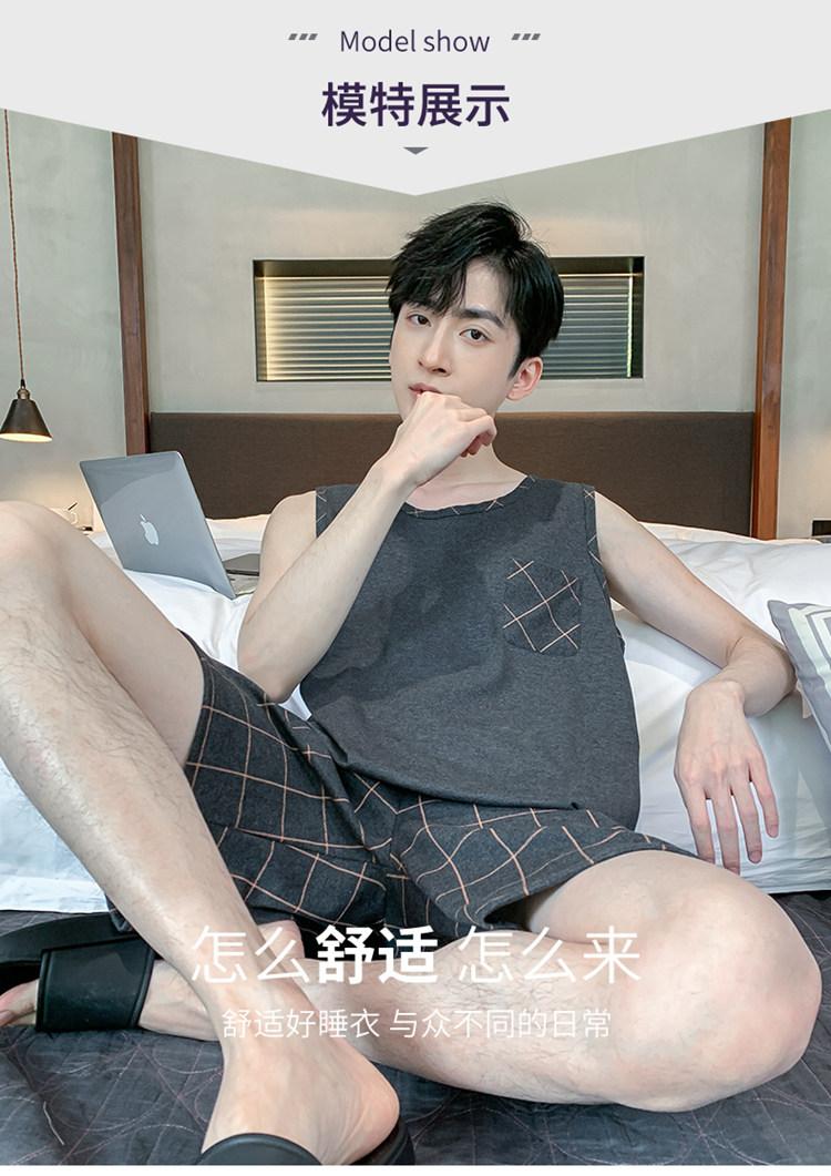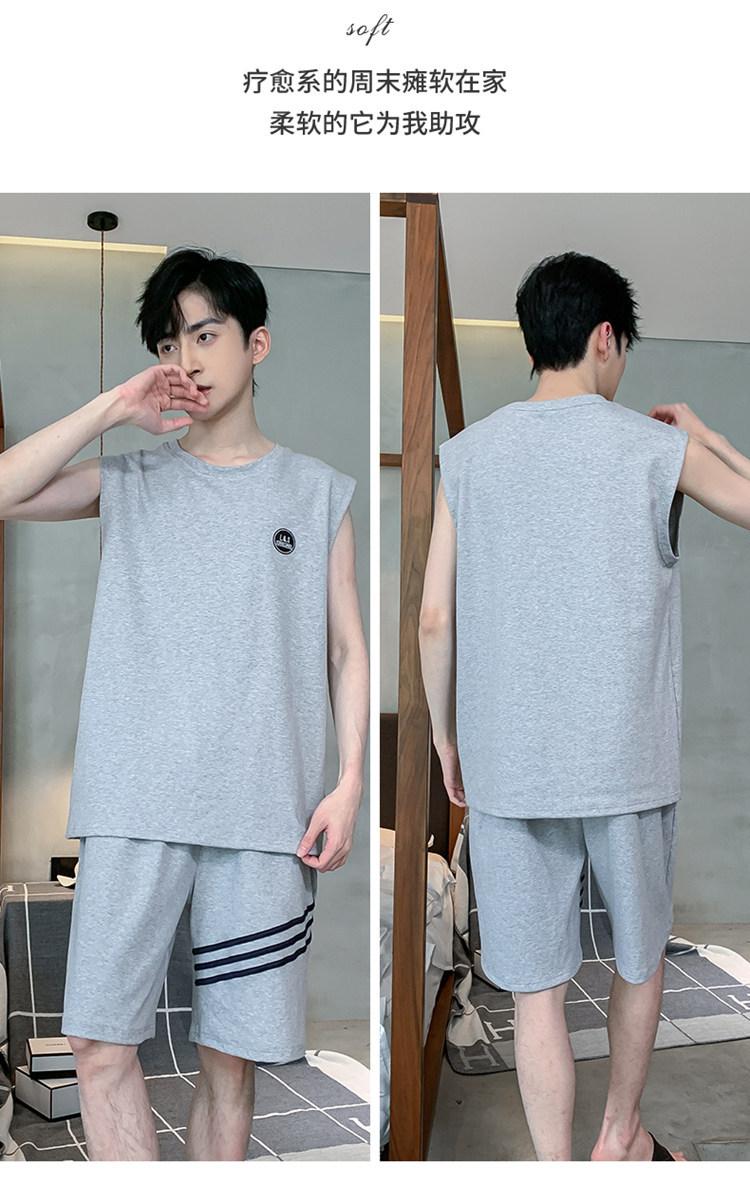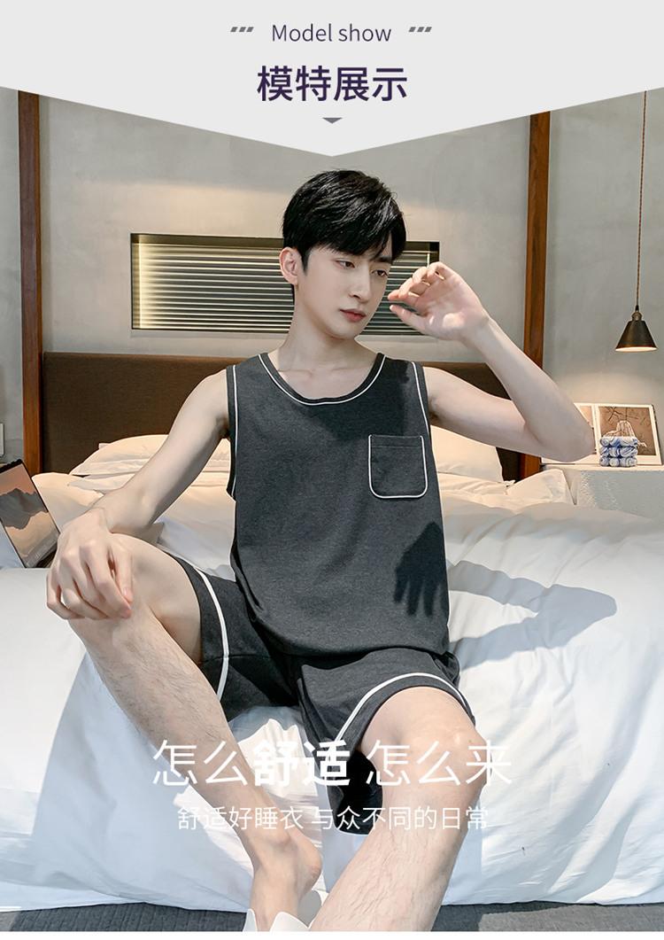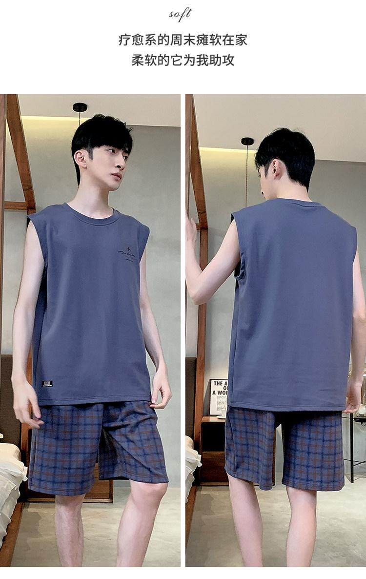 Pijama de Verano para Hombre Algodón Chaleco Shorts Delgada Sin Mangas Talla Grande para Hombre Se Puede Usar Afuera Conjunto de Ropa para el Hogar Juvenil