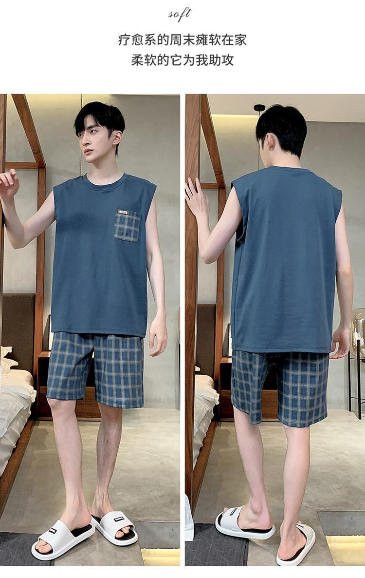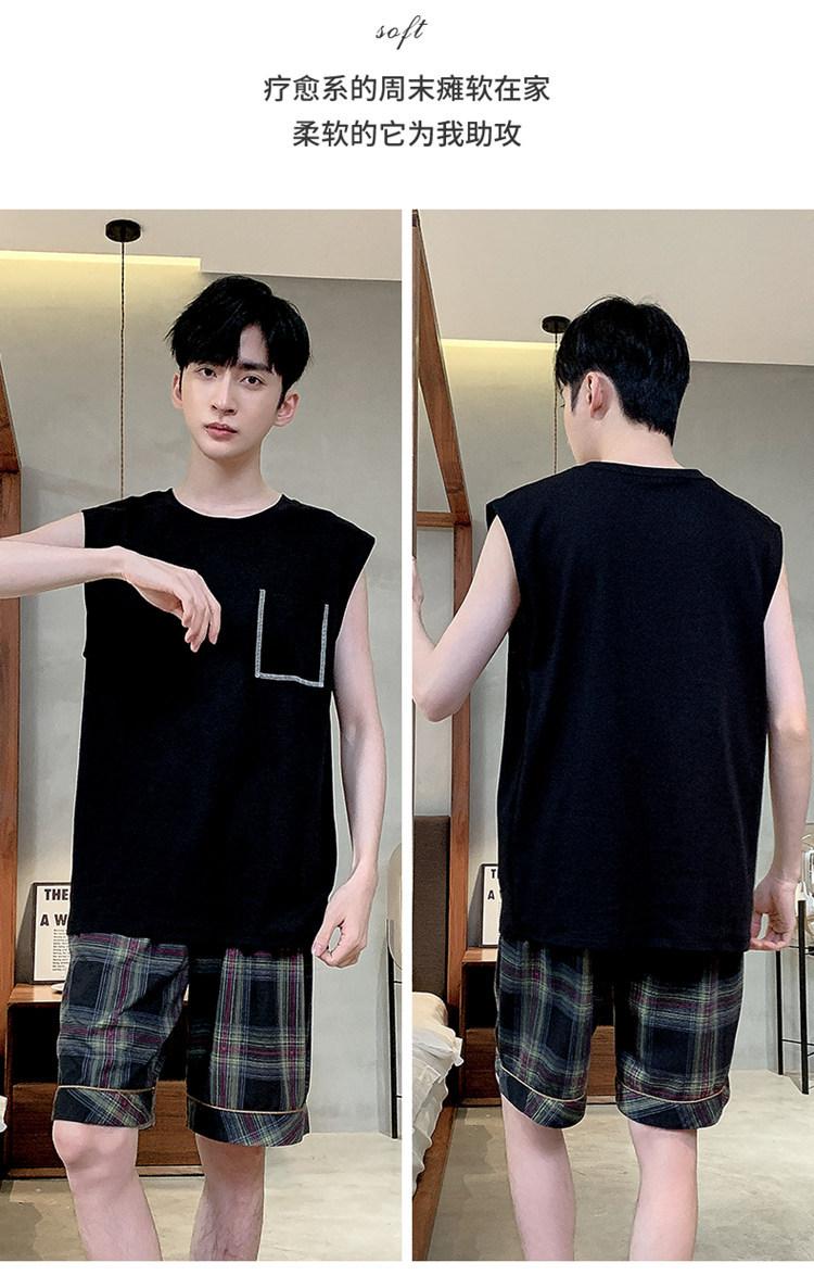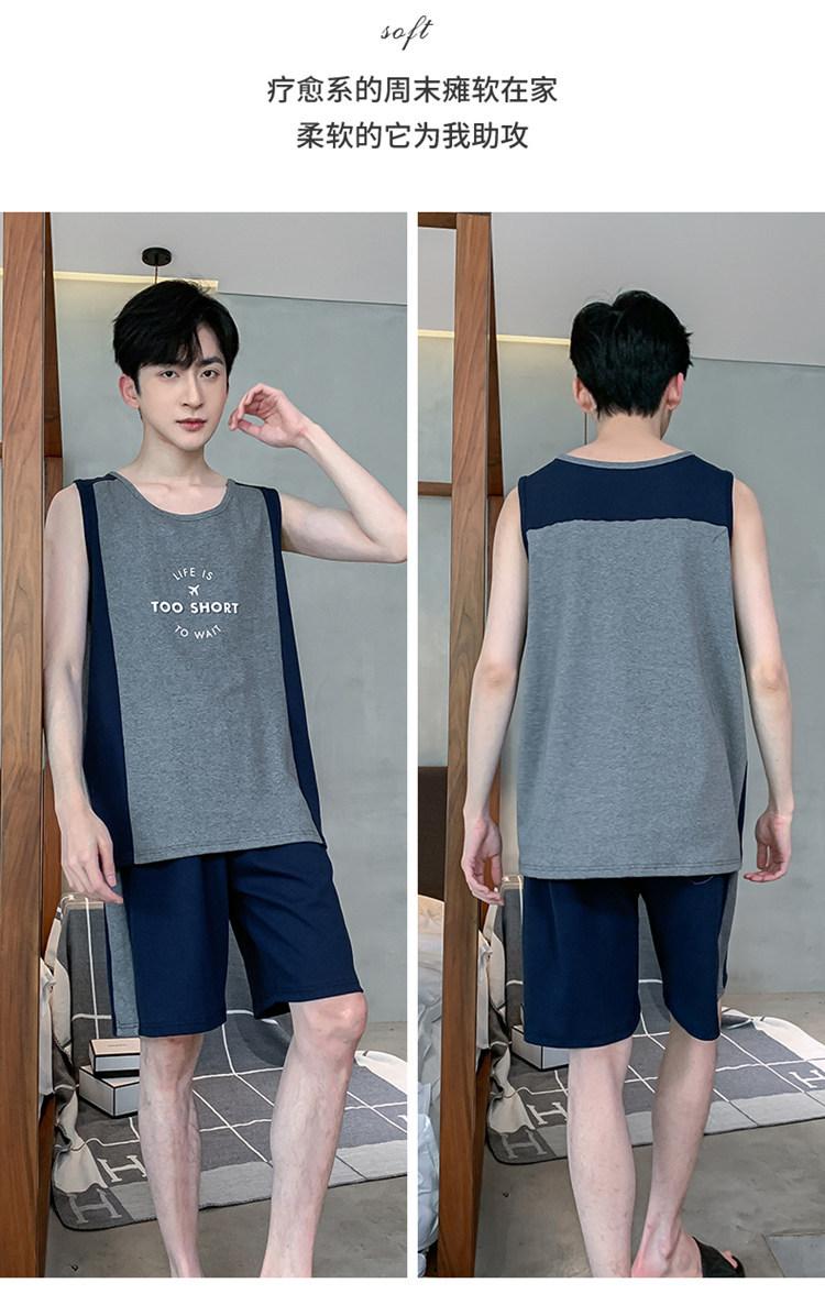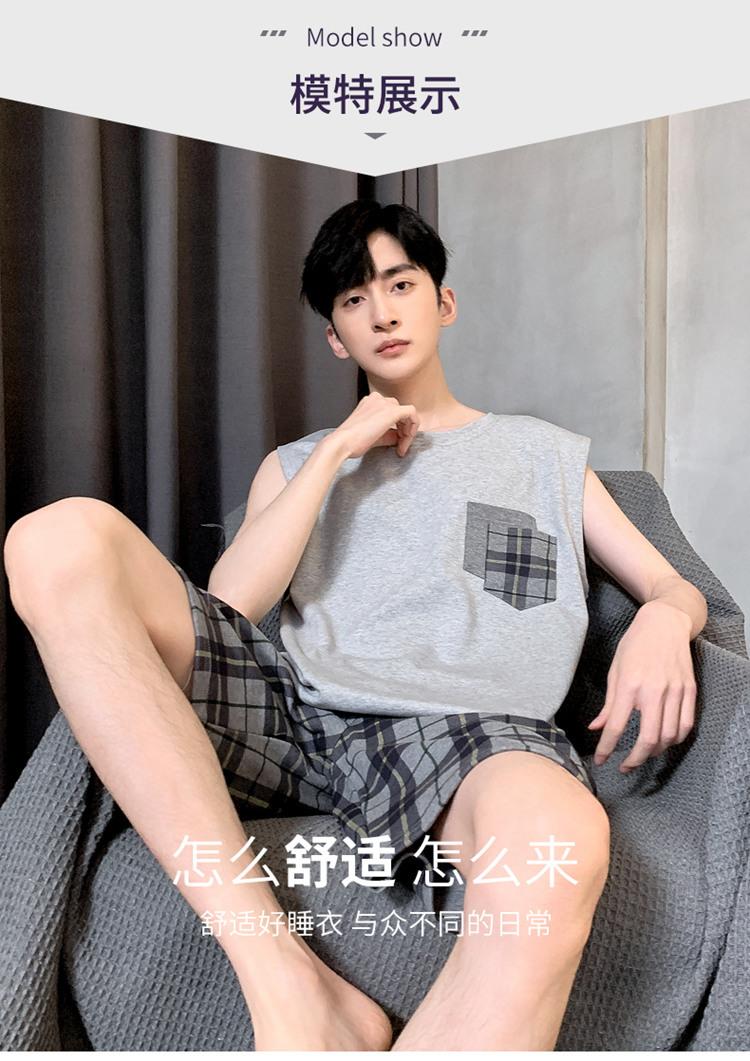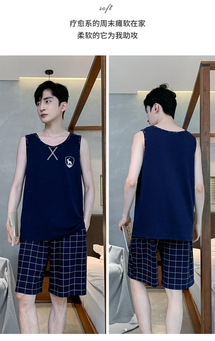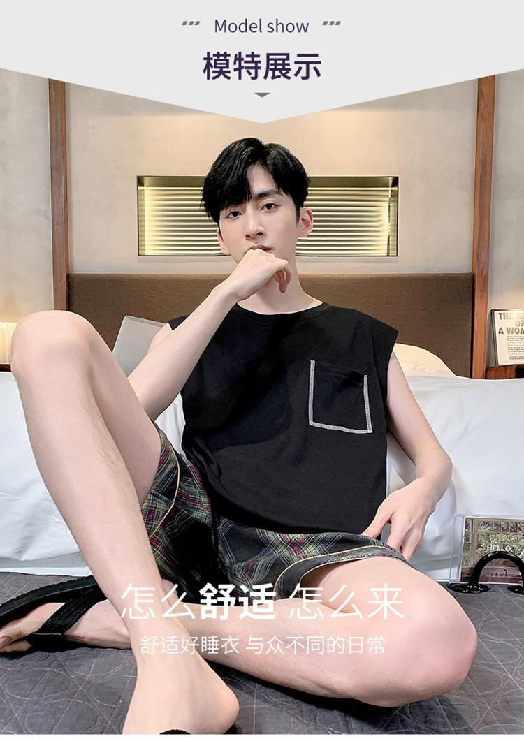 Pijama de Verano para Hombre Algodón Chaleco Shorts Delgada Sin Mangas Talla Grande para Hombre Se Puede Usar Afuera Conjunto de Ropa para el Hogar Juvenil