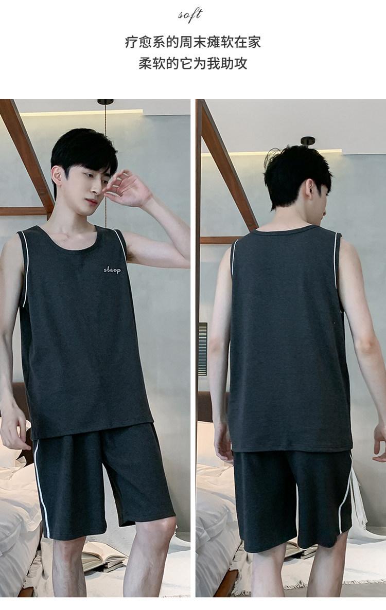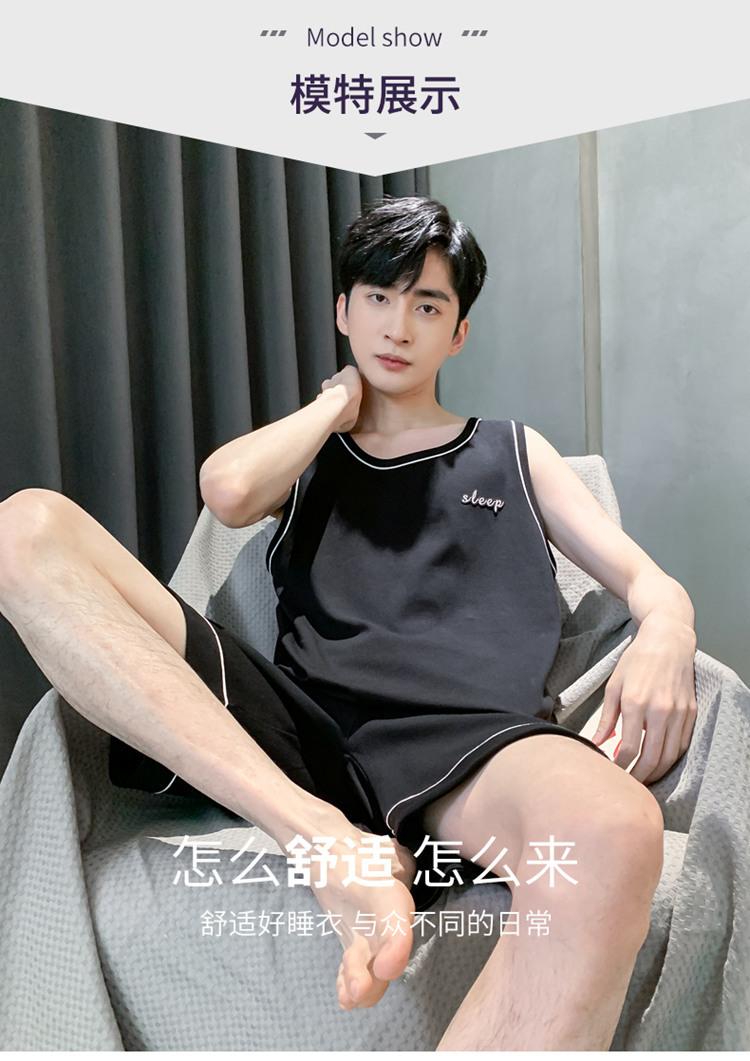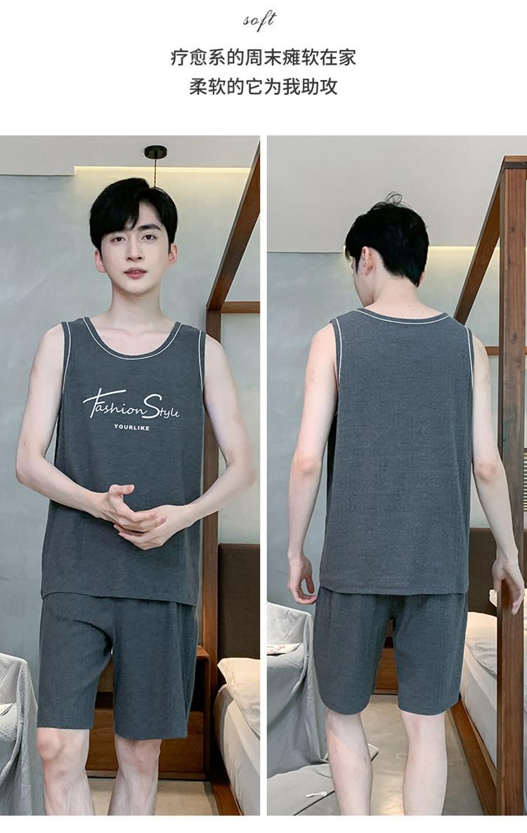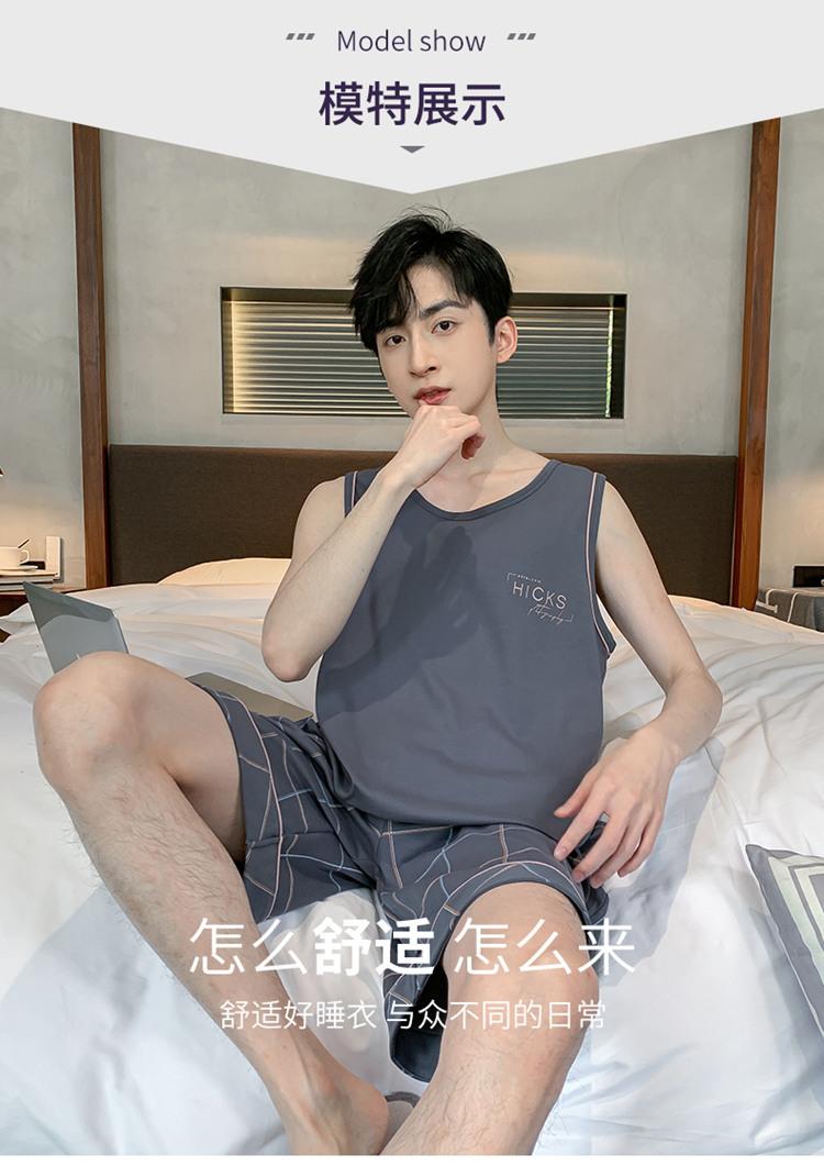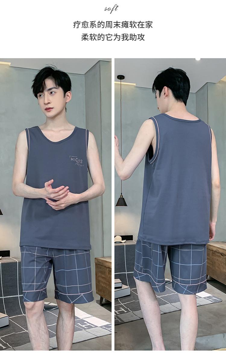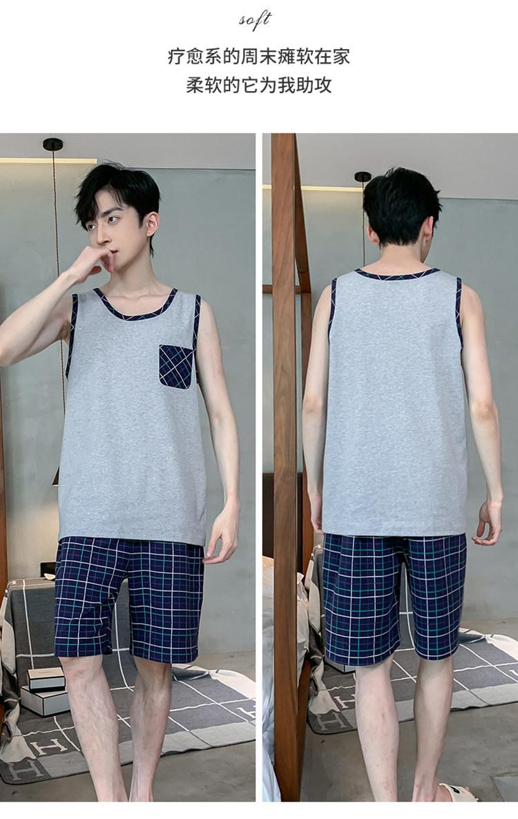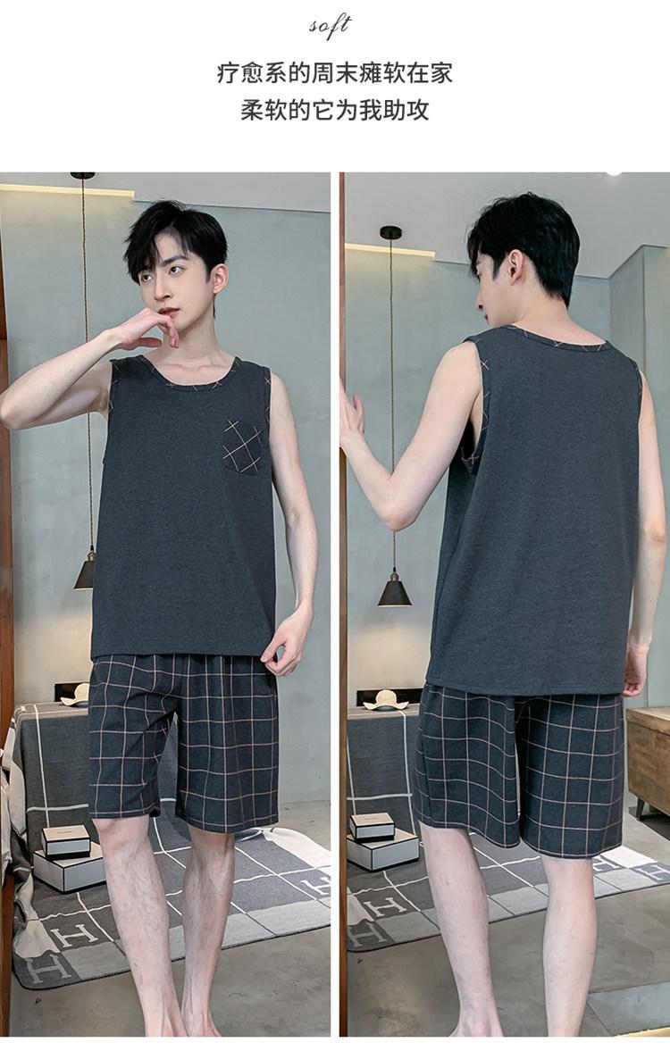Pijama de Verano para Hombre Algodón Chaleco Shorts Delgada Sin Mangas Talla Grande para Hombre Se Puede Usar Afuera Conjunto de Ropa para el Hogar Juvenil