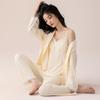 Pijama floral estilo perezoso para mujer, conjunto de tres piezas, primavera y otoño, fino, de verano, para niña, ropa de casa, con tirantes desmontables y almohadilla para el pecho.