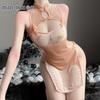 Ropa interior sexy de mujer sexy perspectiva de pecho cintura alta falda dividida cheongsam uniforme traje generación 8559