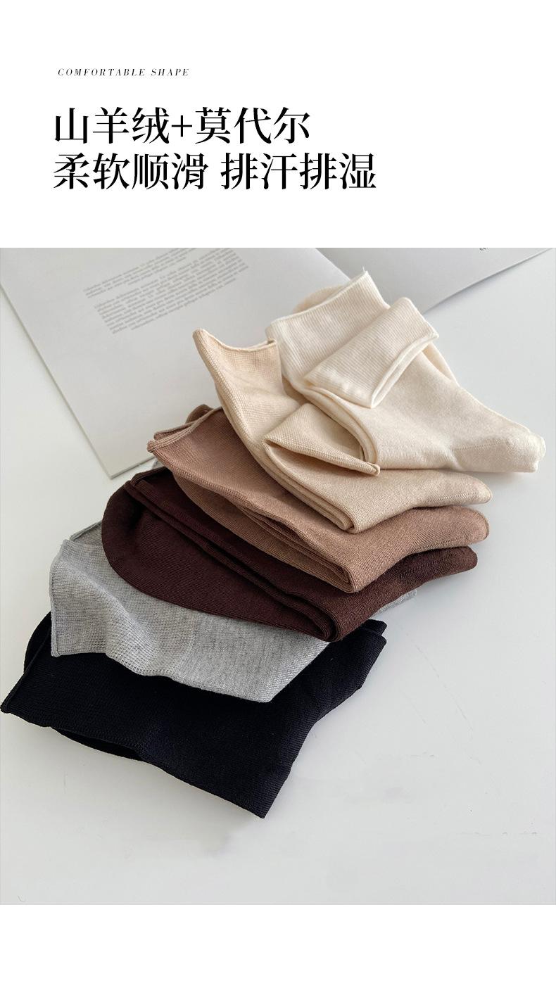 Cachemira Otoño e Invierno Nuevo Calcetines Cálidos para Mujer Estilo Japonés Casual Color Puro Media Caña Calcetines de Rizo Ligero Calcetines Cortos