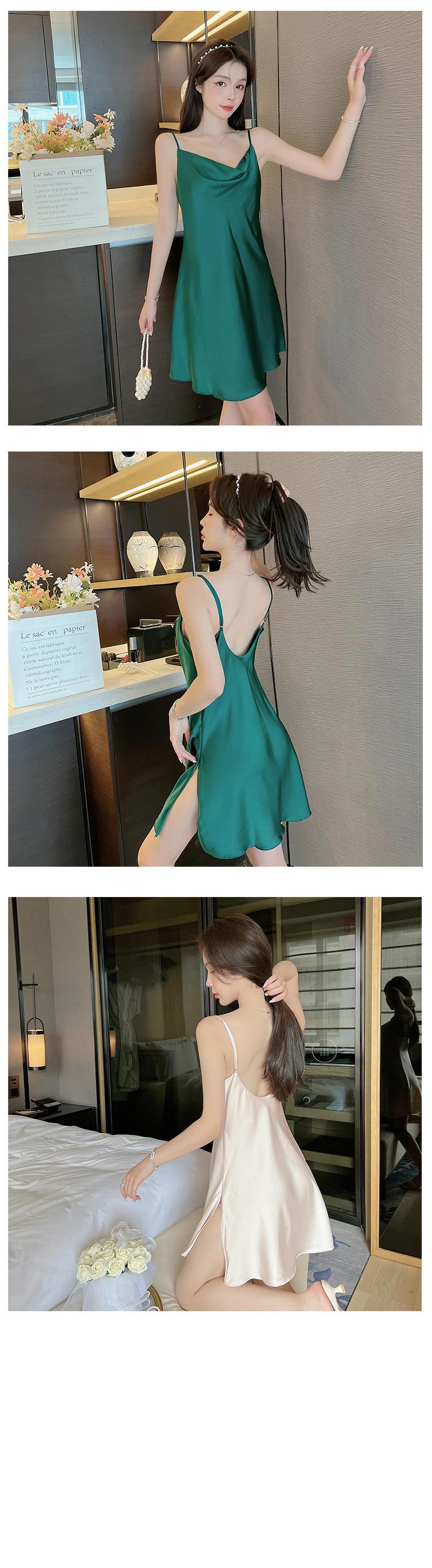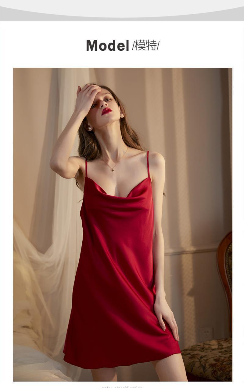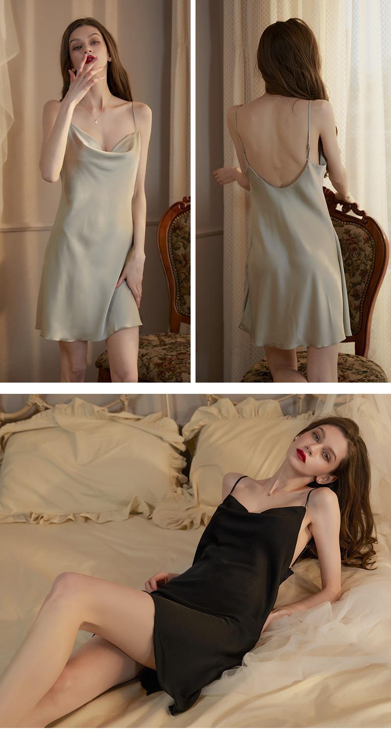 Pijama sexy de verano para mujer, nuevo camisón de tirantes de seda helada, cuello alto, espalda abierta, ropa de hogar nueva con borde cruzado