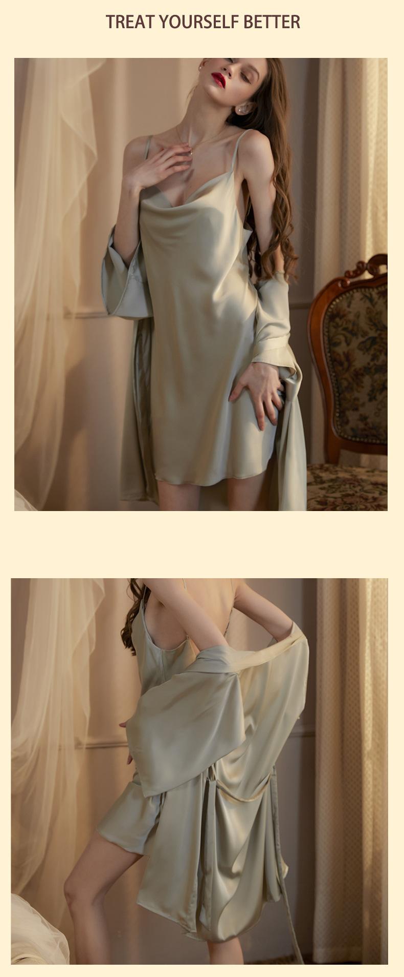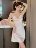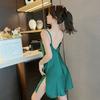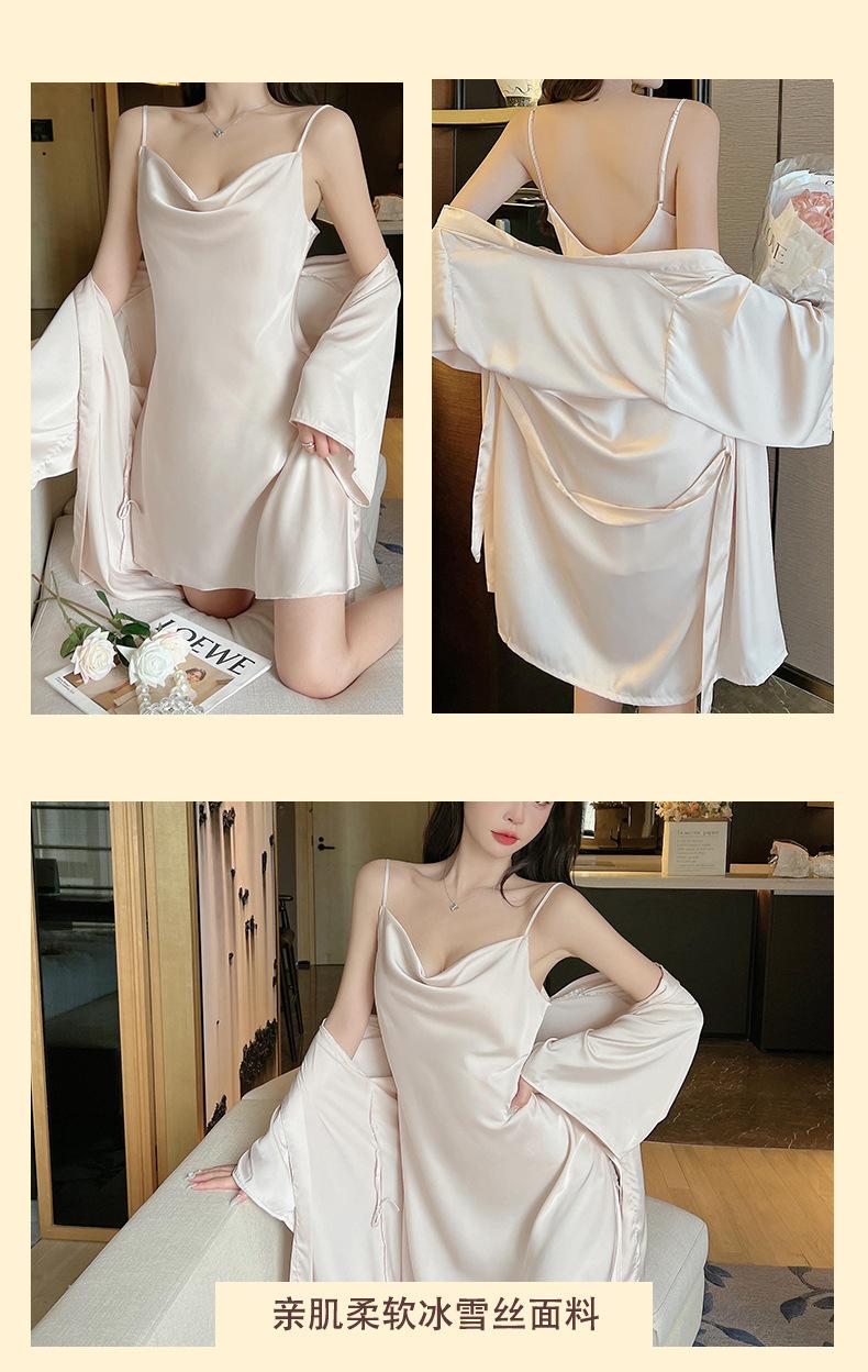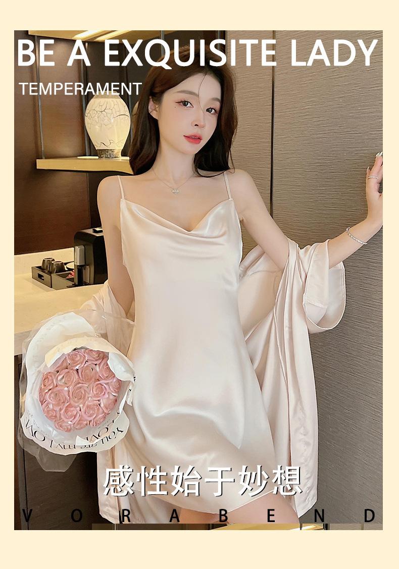 Pijama sexy de verano para mujer, nuevo camisón de tirantes de seda helada, cuello alto, espalda abierta, ropa de hogar nueva con borde cruzado