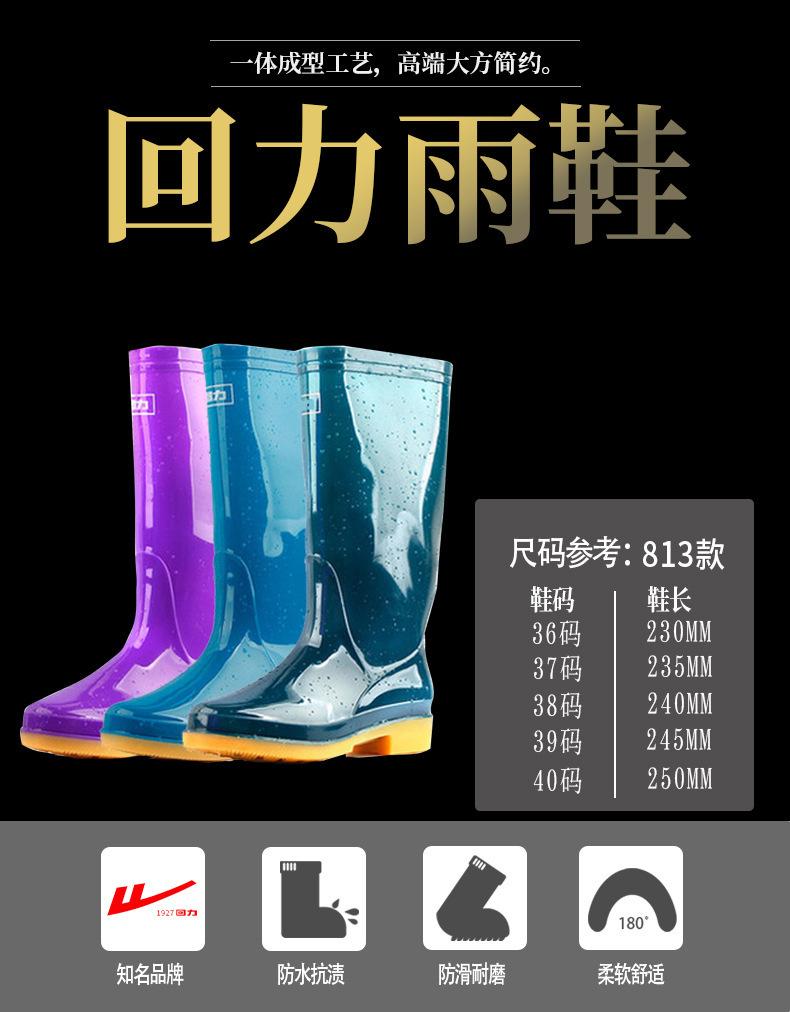 Zapatos de lluvia de caña alta Shanghai Huili 813 moda para mujer botas de lluvia de gama media antideslizantes resistentes al desgaste suela de tendón de vaca zapatos para agua al por mayor