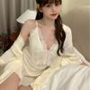 Primavera y Verano Imitación Seda Seda Hielo Encaje Francés Lencería Sexy Camisola Vestido Camisón Cómodo Femenino Deseo Puro Ropa de Dormir