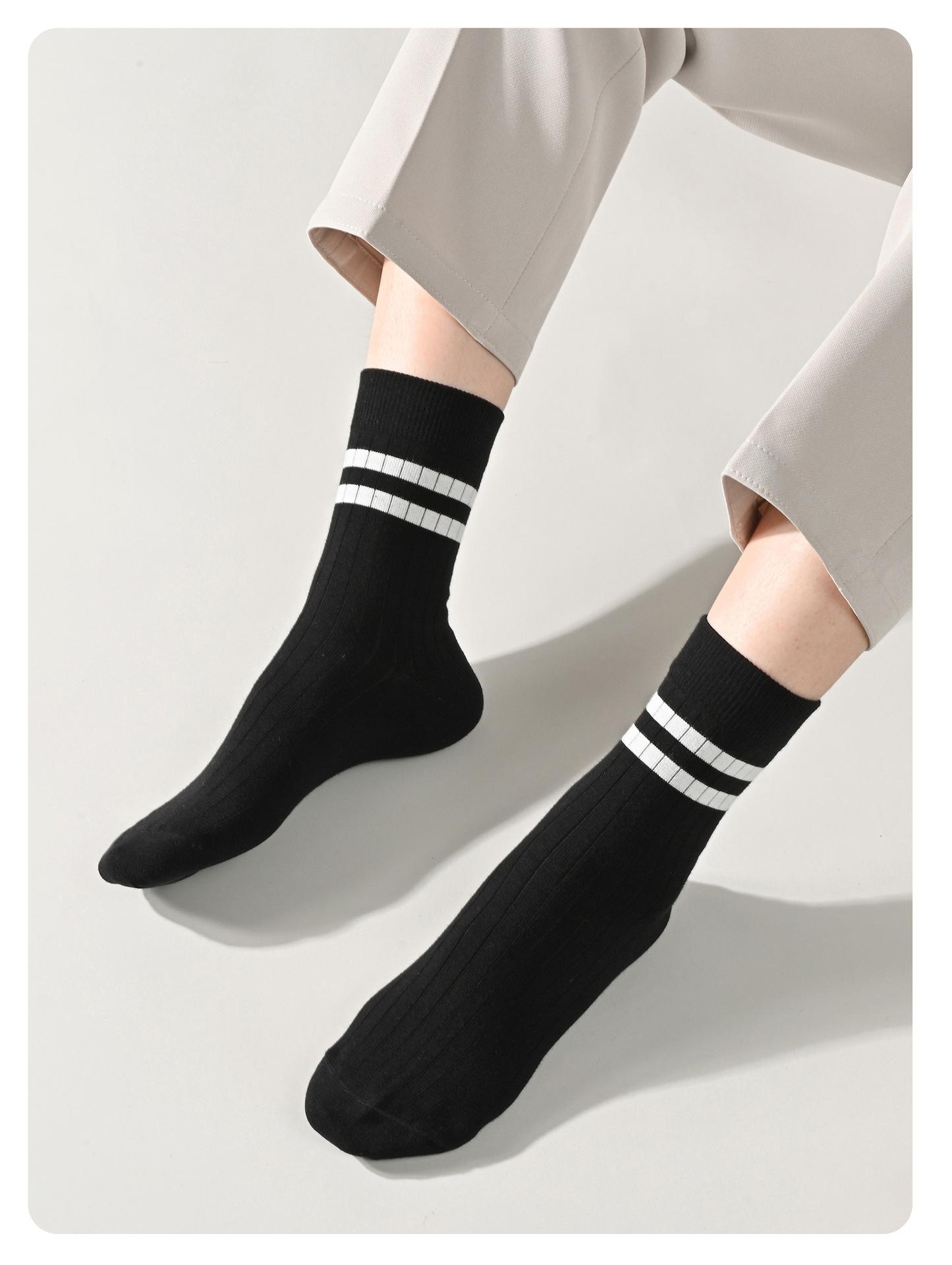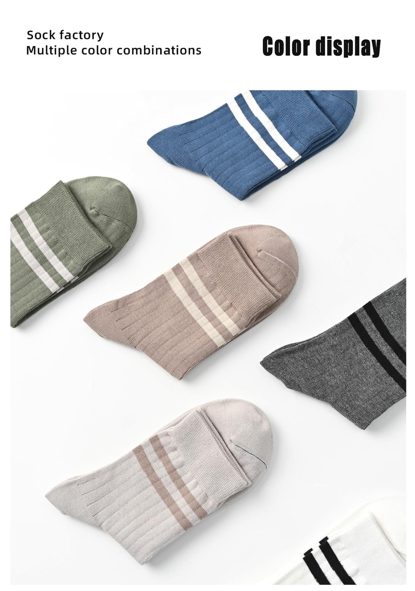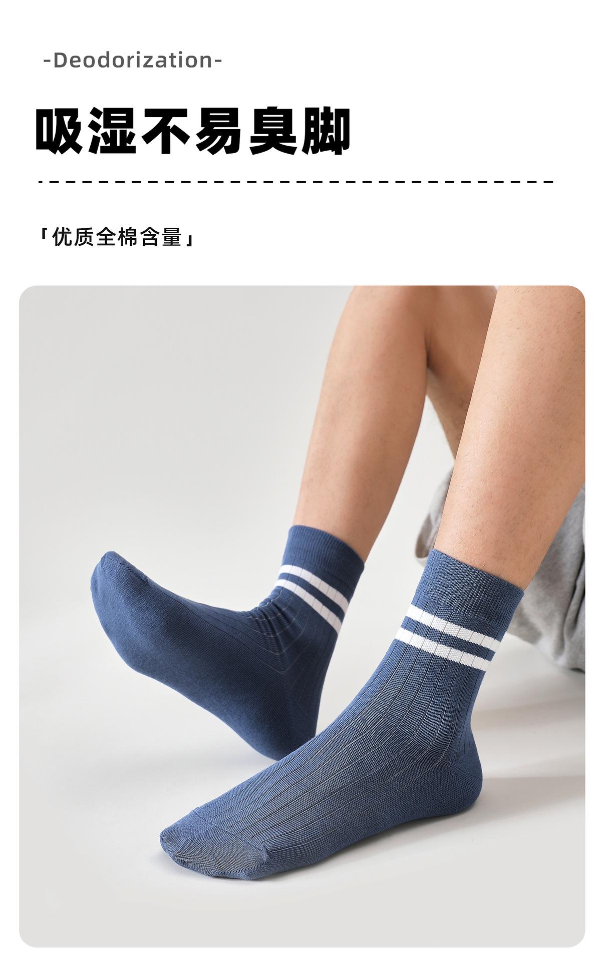 Calcetines Antibacteriales de Algodón para Hombre Media Caña Algodón Puro Primavera y Otoño Calcetines para Hombre Desodorantes Absorbentes de Sudor Rayados Calcetines Deportivos Calcetines de Estudiante