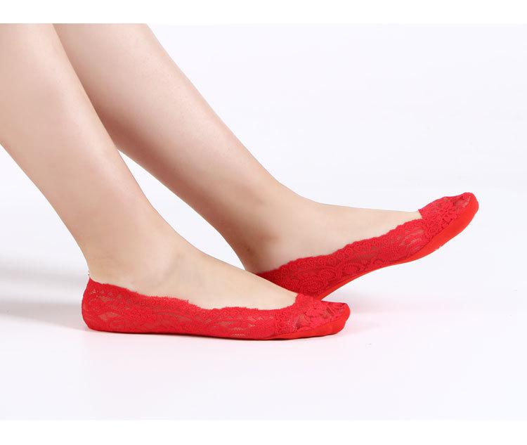 Calcetines rojos de verano para mujer, calcetines invisibles para bodas, calcetines festivos, calcetines de encaje poco profundos, venta al por mayor, calcetines de suelo de este año de vida