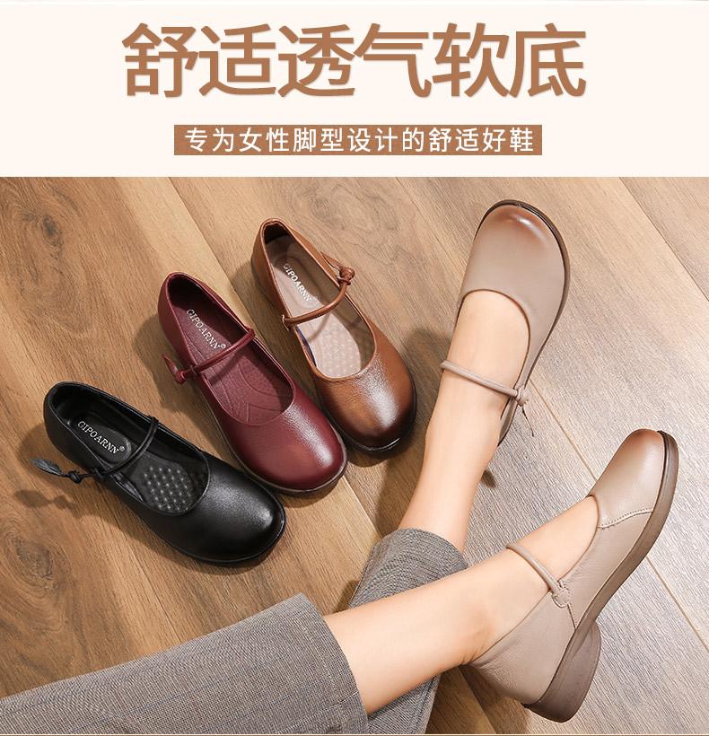 Zapatos para Mujeres de Mediana Edad y Mayores, Zapatos de Madre, Zapatos Planos de Cuero de Suela Blanda de Verano, Zapatos Planos Antideslizantes de Cuero Suave 2025 Nuevos