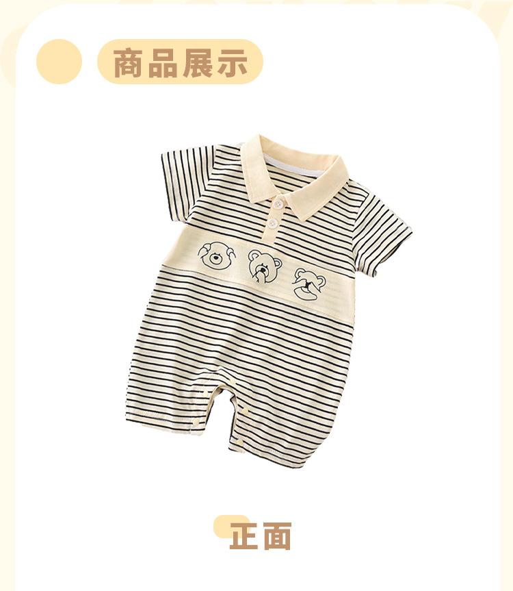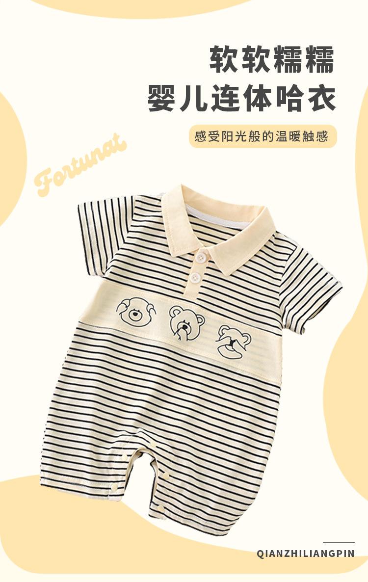 Mameluco de Verano de Manga Corta para Bebé 0-18 Meses Ropa para Gatear de Bebé Verano Súper Lindo Solapa de Media Manga