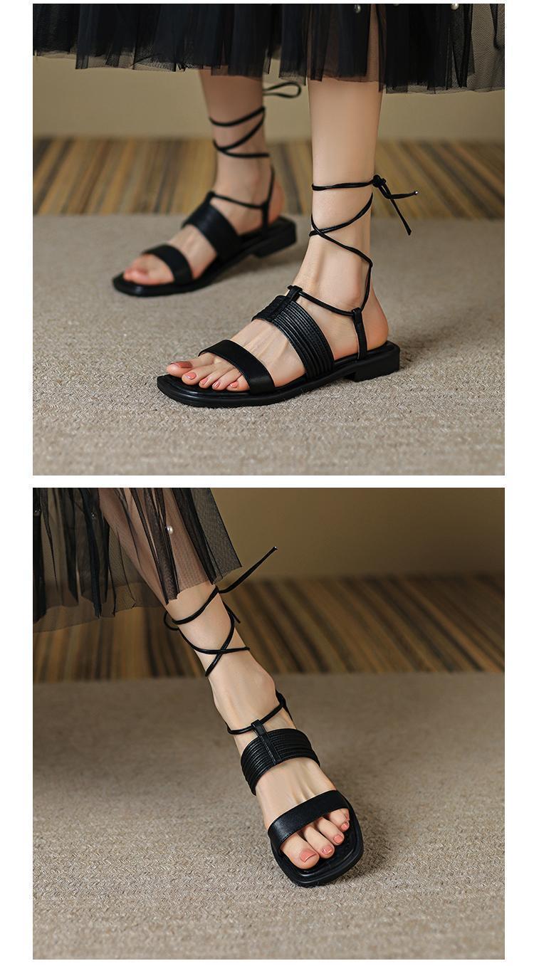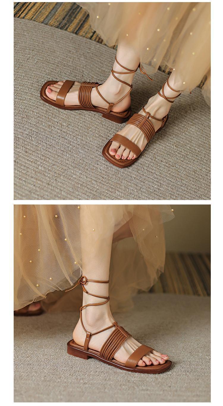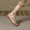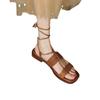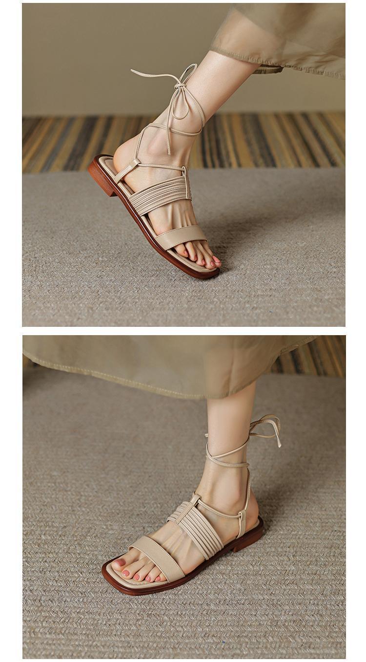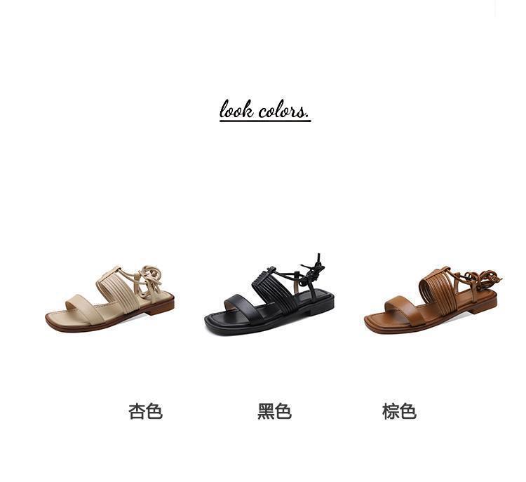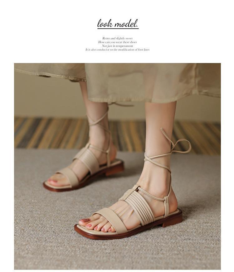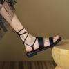 Francés 2025 Nuevo Estilo de Verano Tira Cruzada Retro Tacón Bajo Flats de Punta Abierta de Una Línea Sandalias Romanas para Mujer
