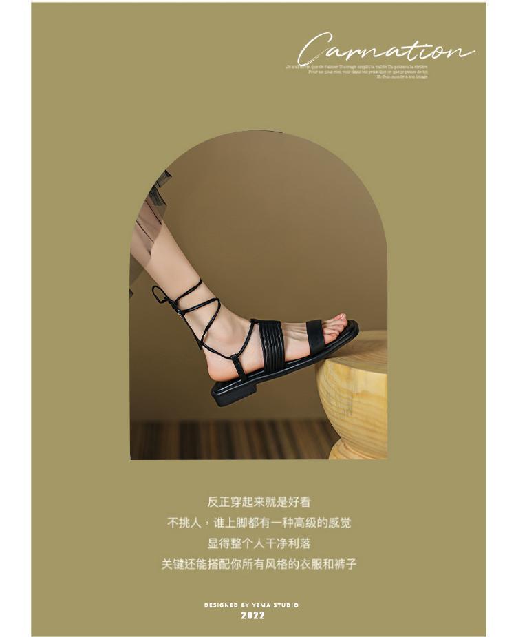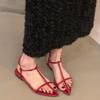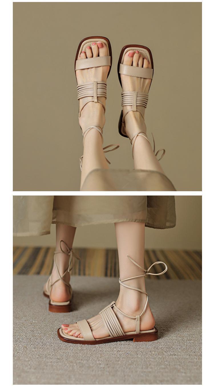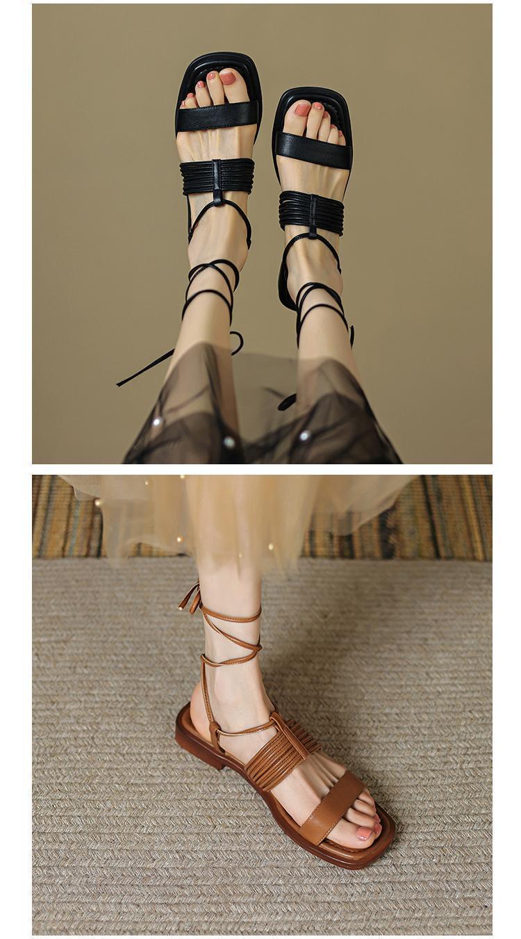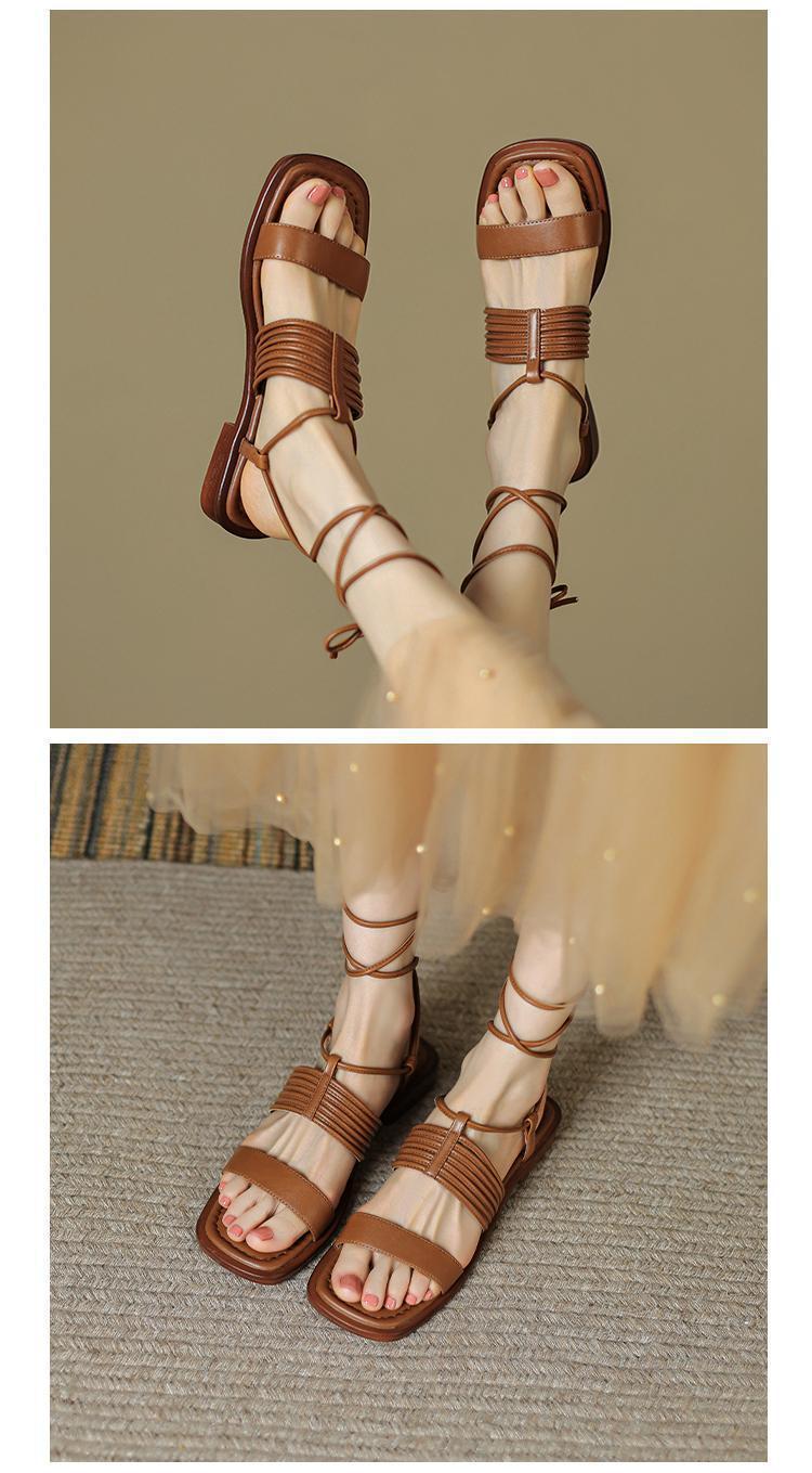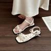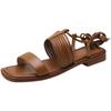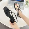 Francés 2025 Nuevo Estilo de Verano Tira Cruzada Retro Tacón Bajo Flats de Punta Abierta de Una Línea Sandalias Romanas para Mujer