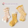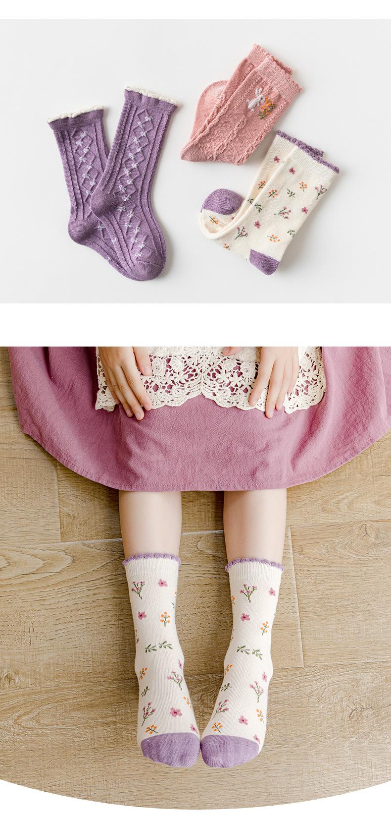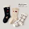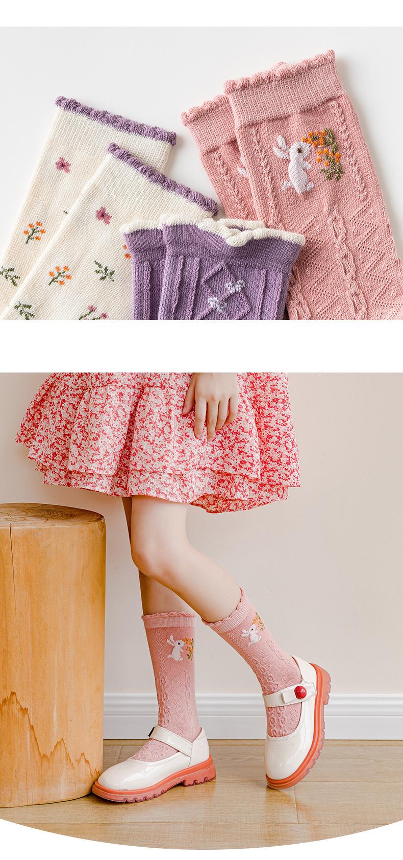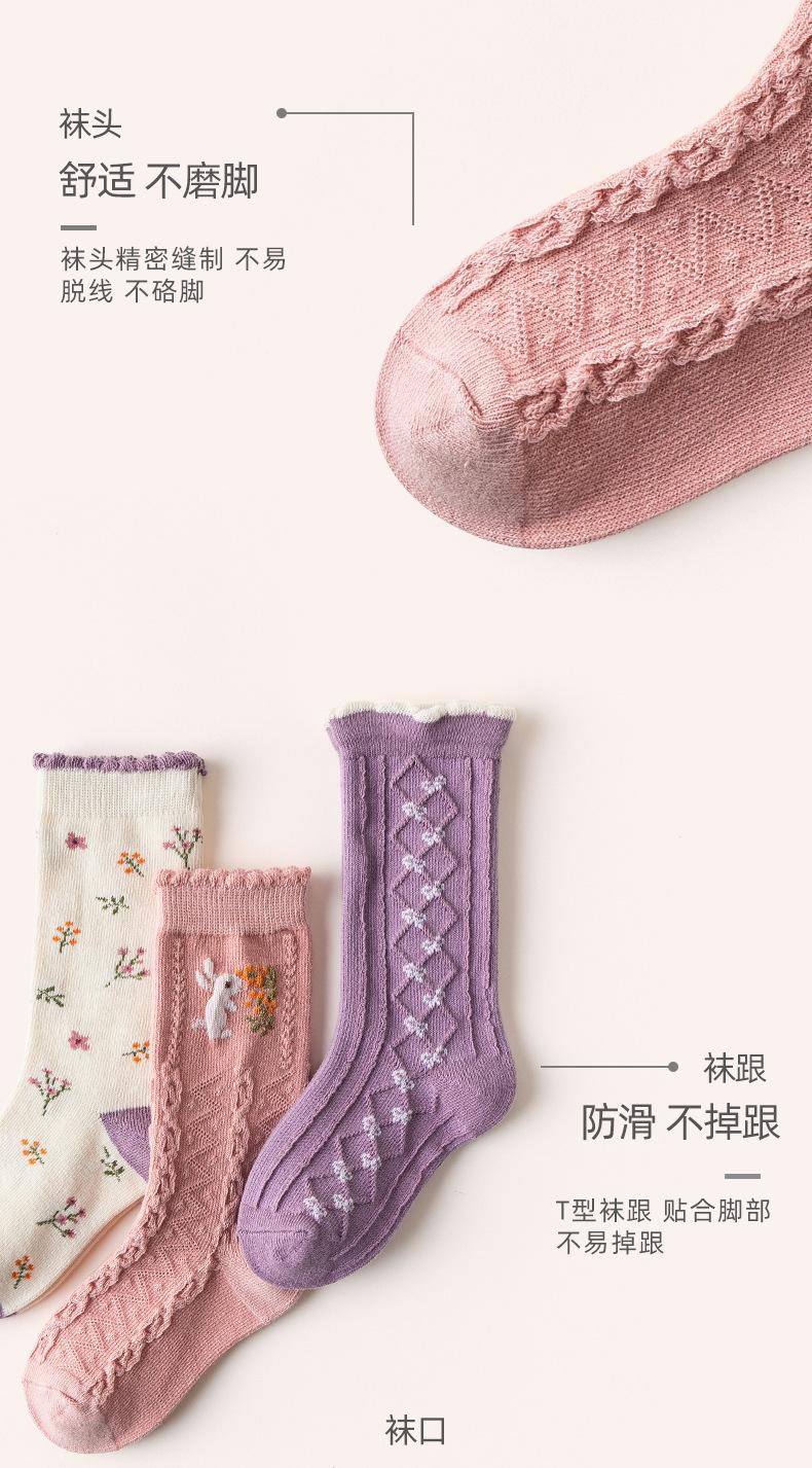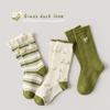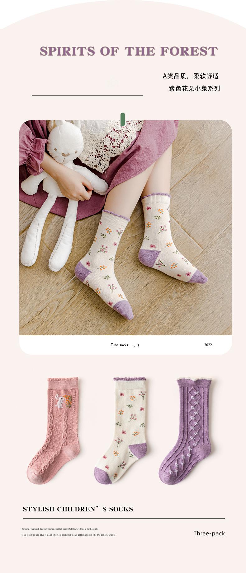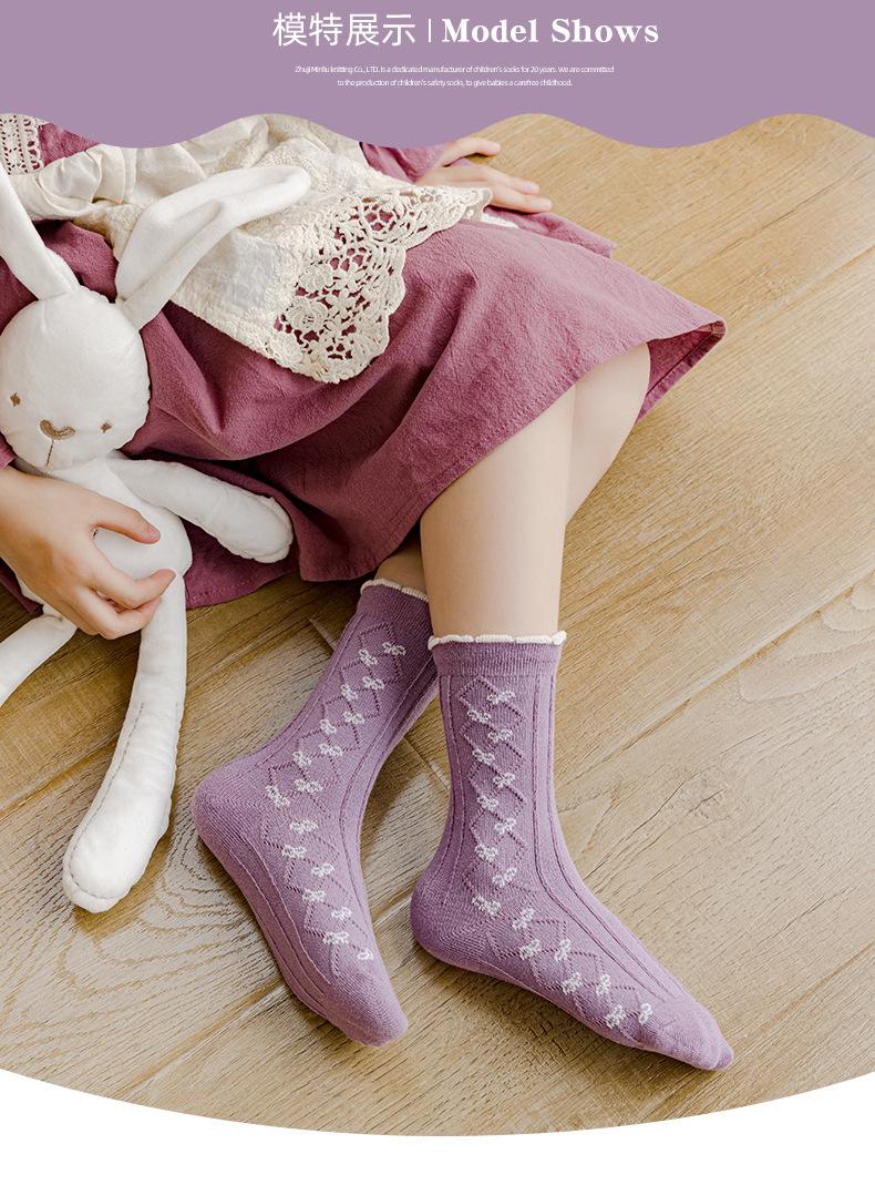 Calcetines de otoño para niños, venta al por mayor, calcetines de tubo medio de encaje Mori de hilo doble, calcetines de algodón suave para niñas, calcetines dulces para niños