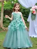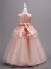 Vestido de novia largo para niñas, falda de princesa de malla esponjosa, ropa infantil europea y americana de talla mediana y grande, ropa de rendimiento estampada para niñasOrdene ahora