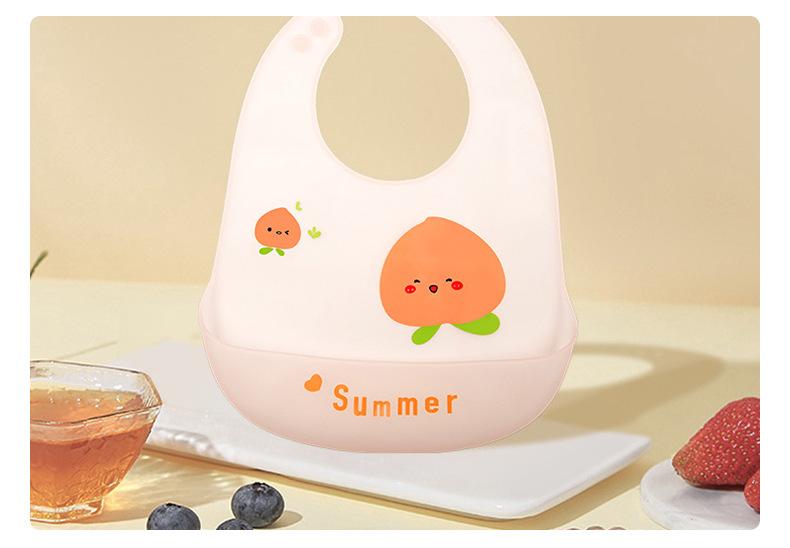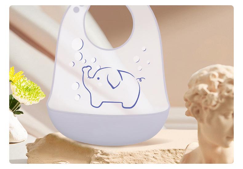 Babero de silicona Leyton para niños, con bolsillo para comida, suave, ligero e impermeable, con bolsillo para saliva de dibujos animados, toalla para saliva de bebé.