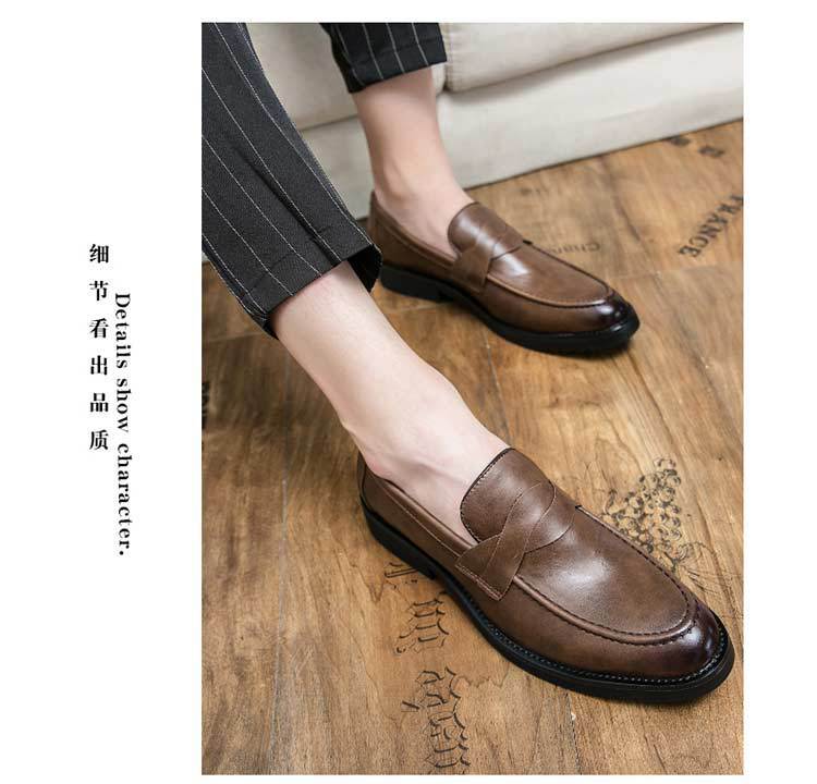 Comercio Exterior Talla Grande Zapatos para Hombre Casual Moda Slip-On Zapatos de Cuero Estilo Coreano Formal de Negocios Punta Afilada Zapatos de Cuero Pequeños Mocasines para Hombre