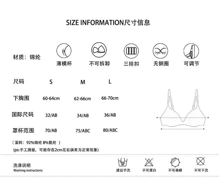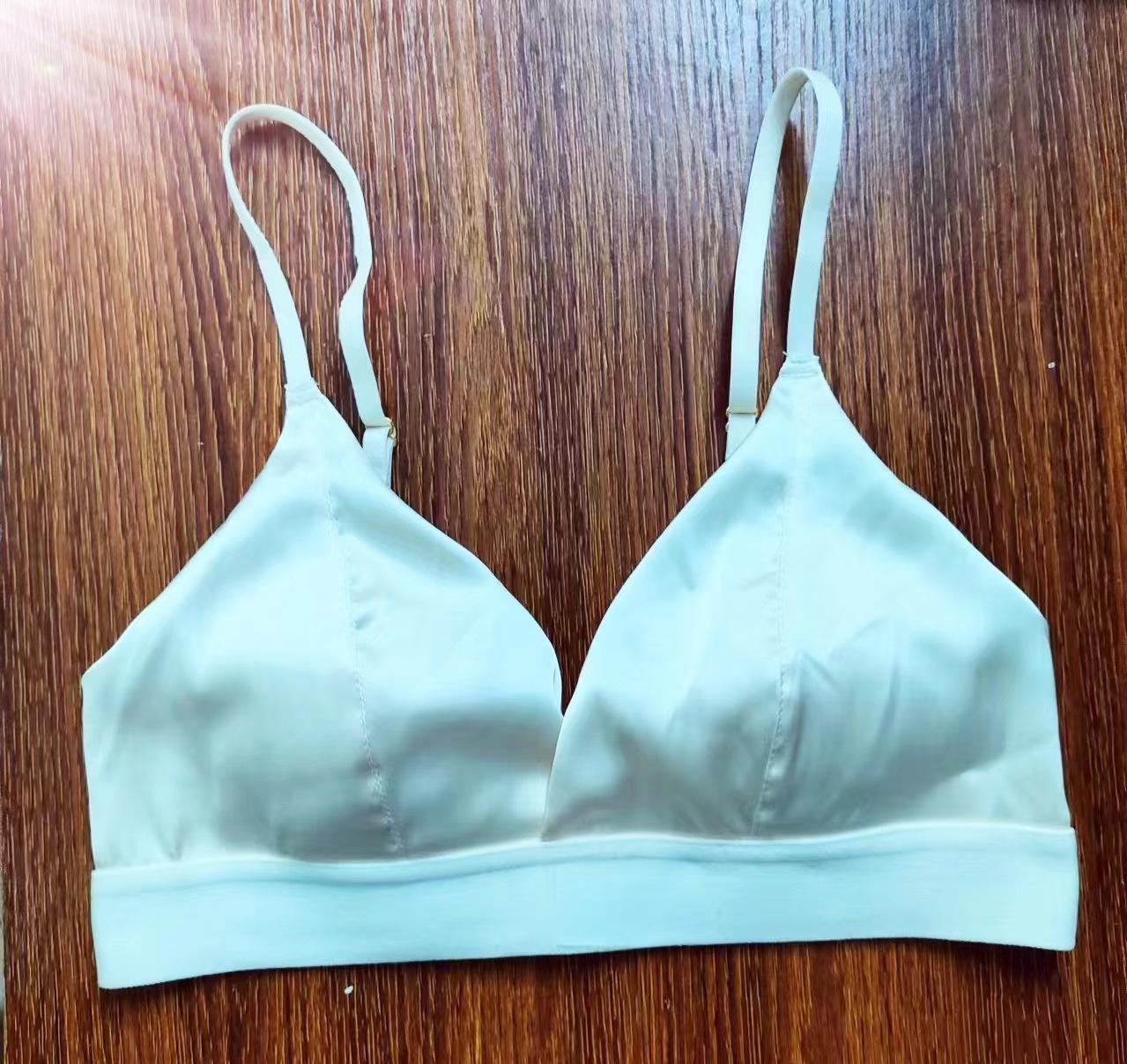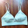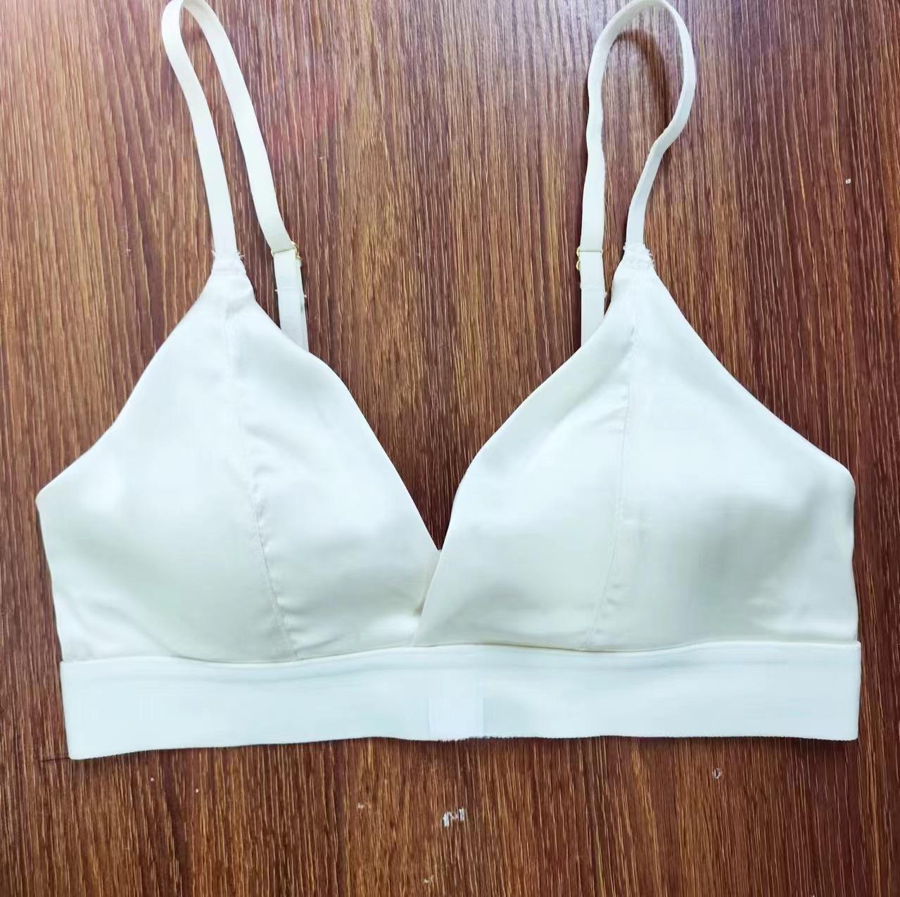 Sujetador de copa triangular sexy de color sólido francés sin aro de acero cómodo con tirantes finos para el hombro y hebilla delantera.