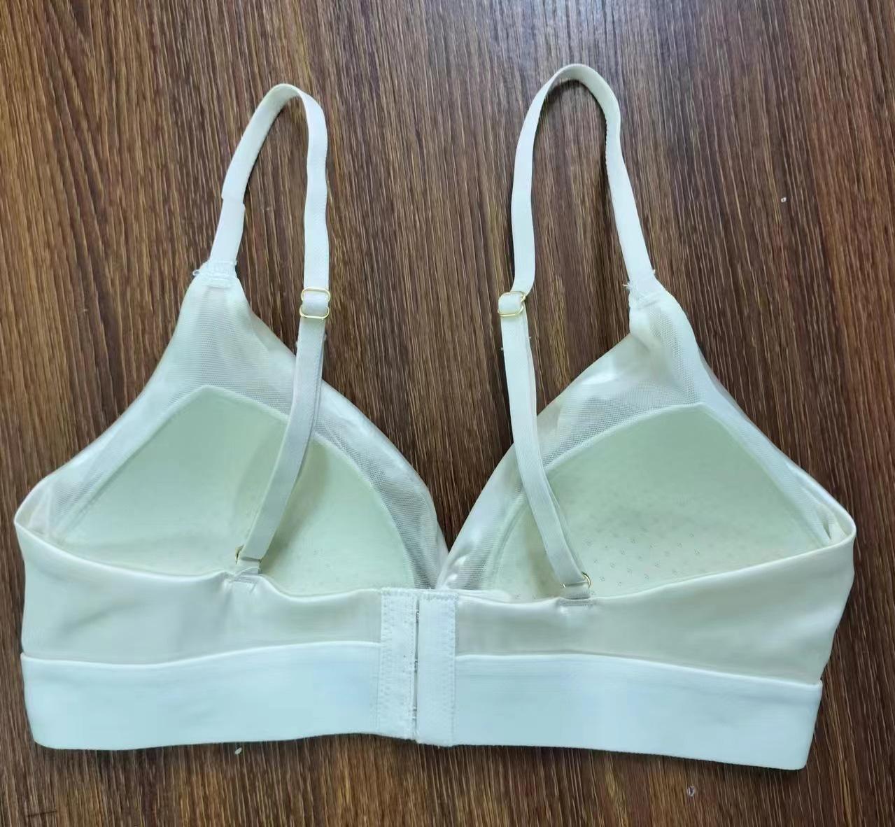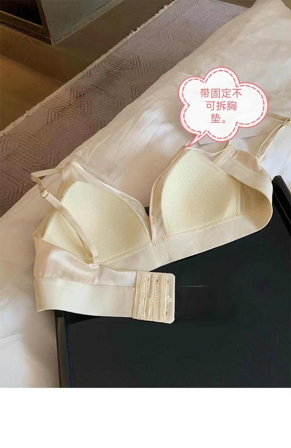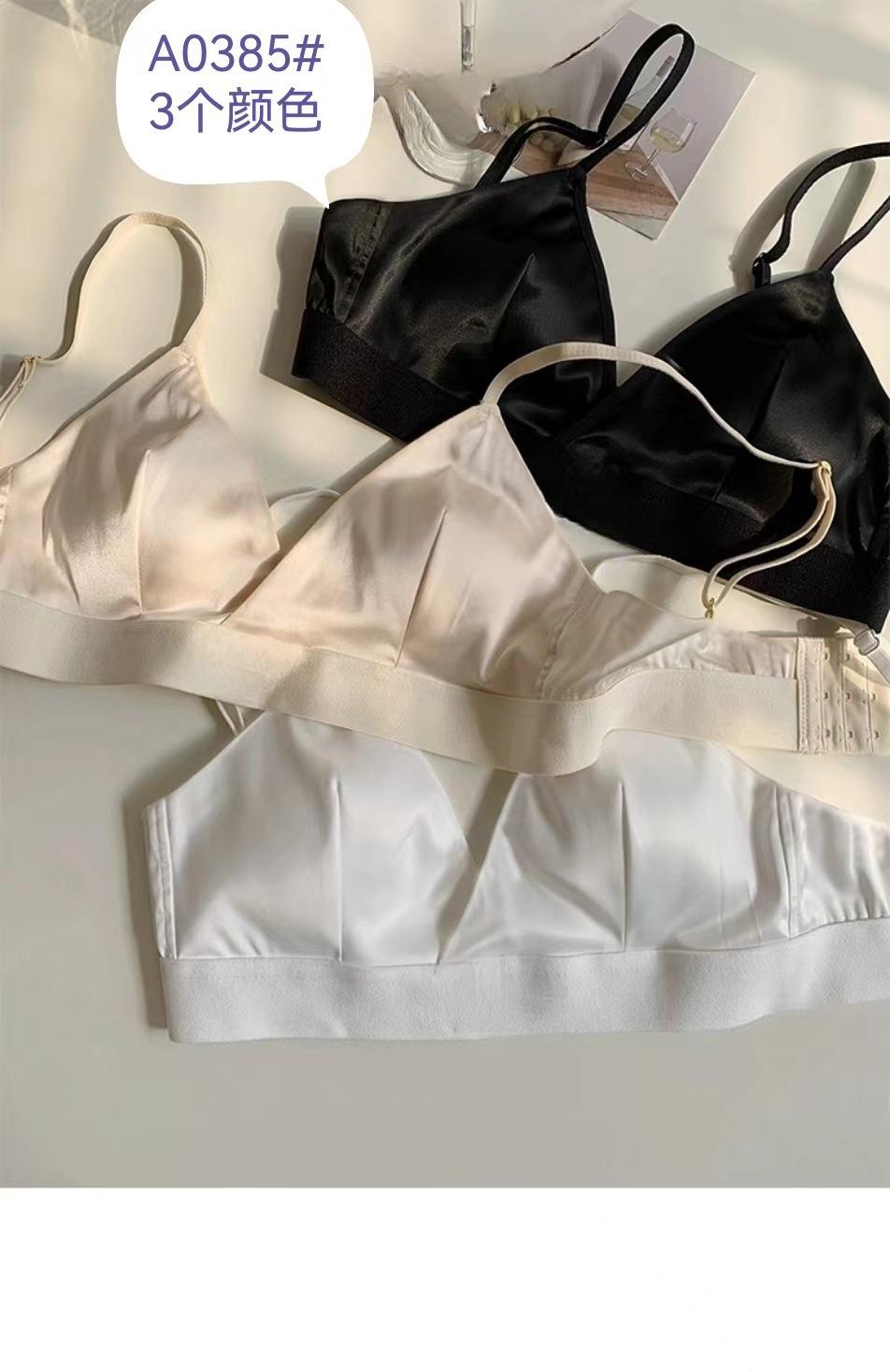 Sujetador de copa triangular sexy de color sólido francés sin aro de acero cómodo con tirantes finos para el hombro y hebilla delantera.