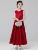 Vestido de noche para niña, vestido de princesa de alta gama para niña de flores rojas, disfraz de piano para niña de otoño