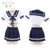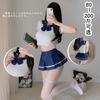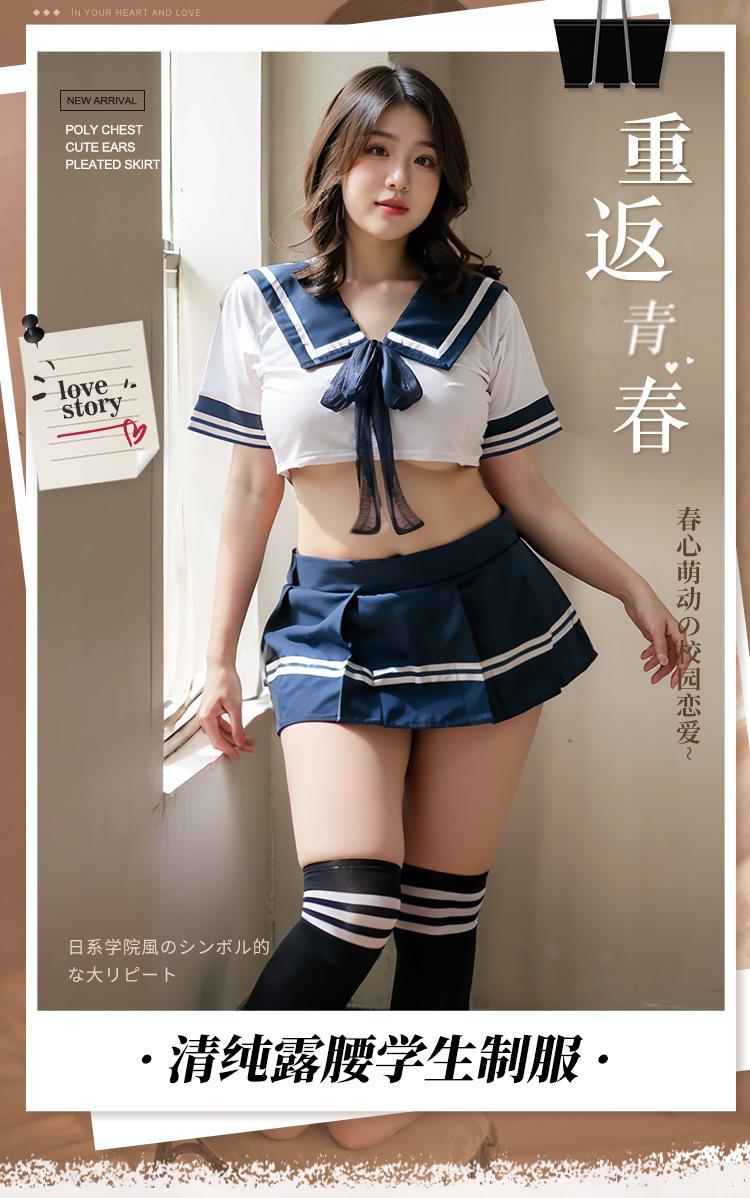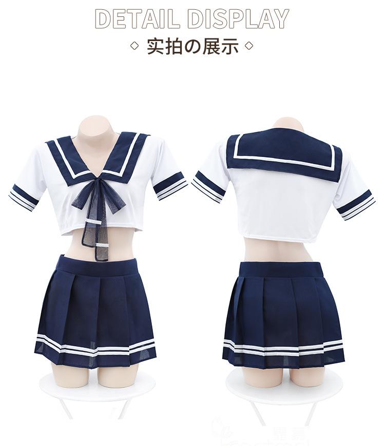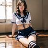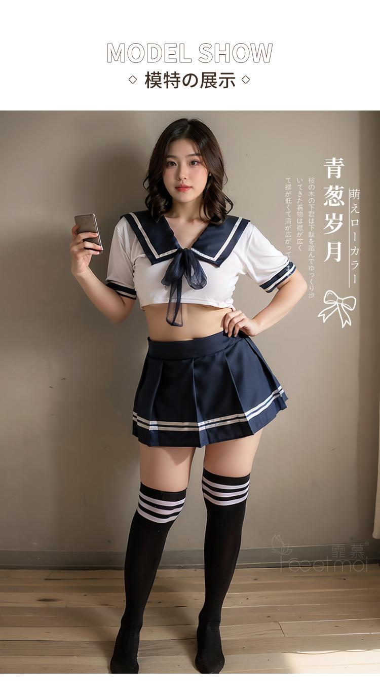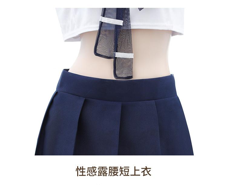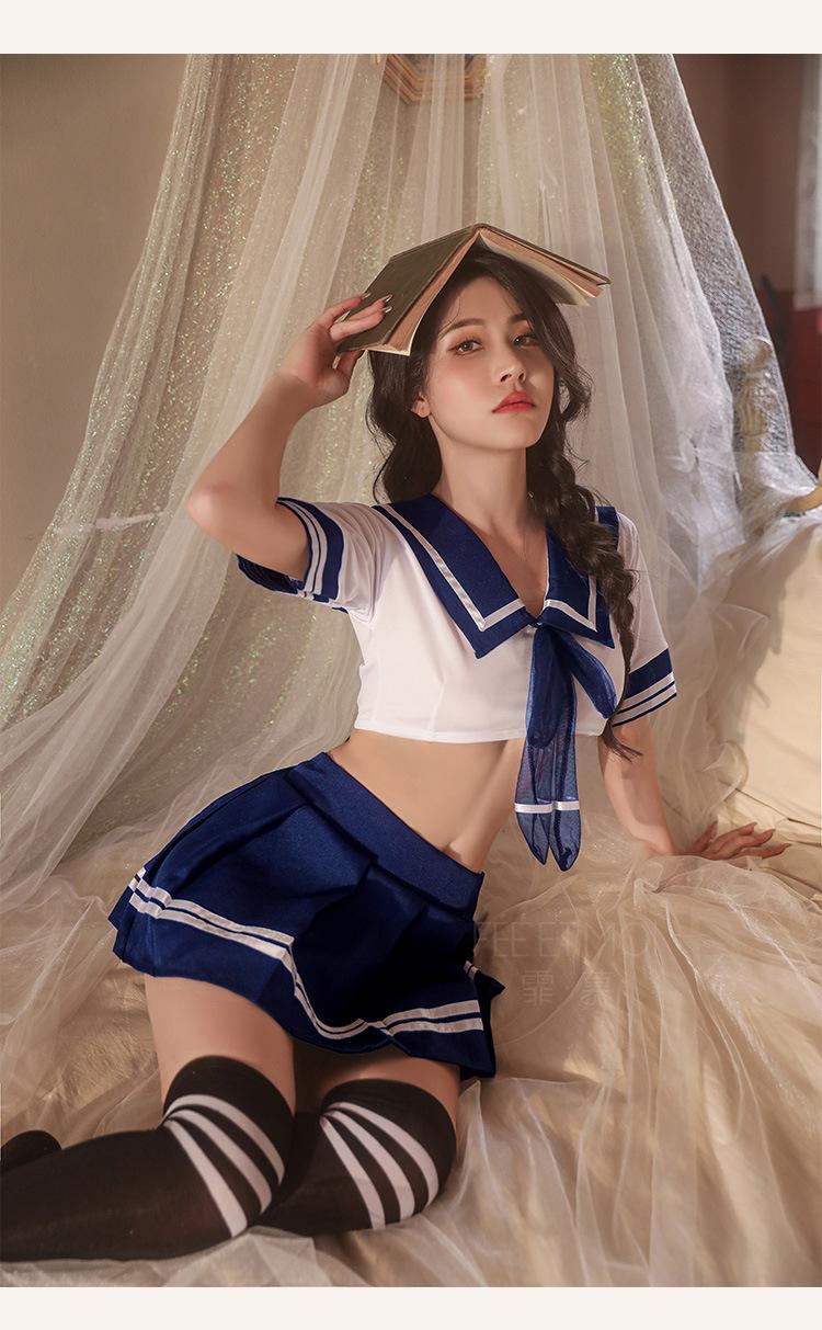 ◆Ampliar◆Azul oscuro + blanco [top corto + falda plisada + pantalón tipo camiseta] + medias largas negras NY1XST000099 (precio limitado 42,7)