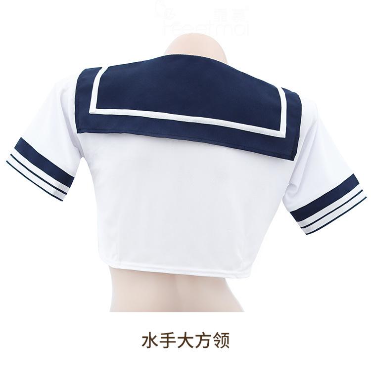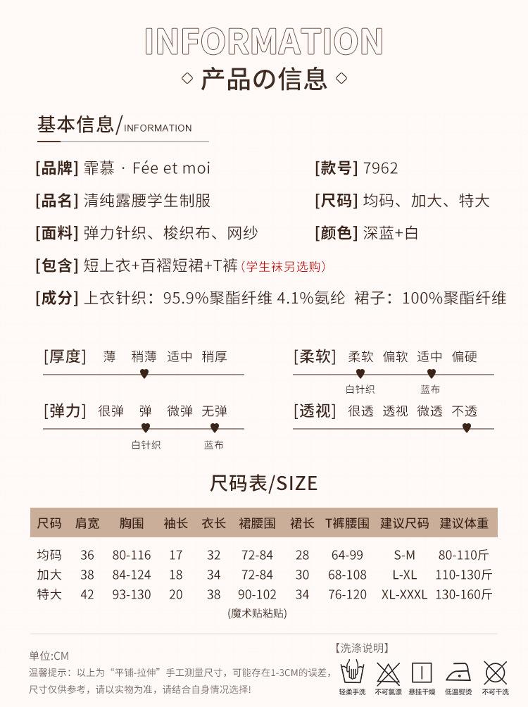 ◆Extra Grande◆Azul oscuro + blanco [top corto + falda plisada + pantalón tipo camiseta] 6937486693096 (precio limitado: 39,9)