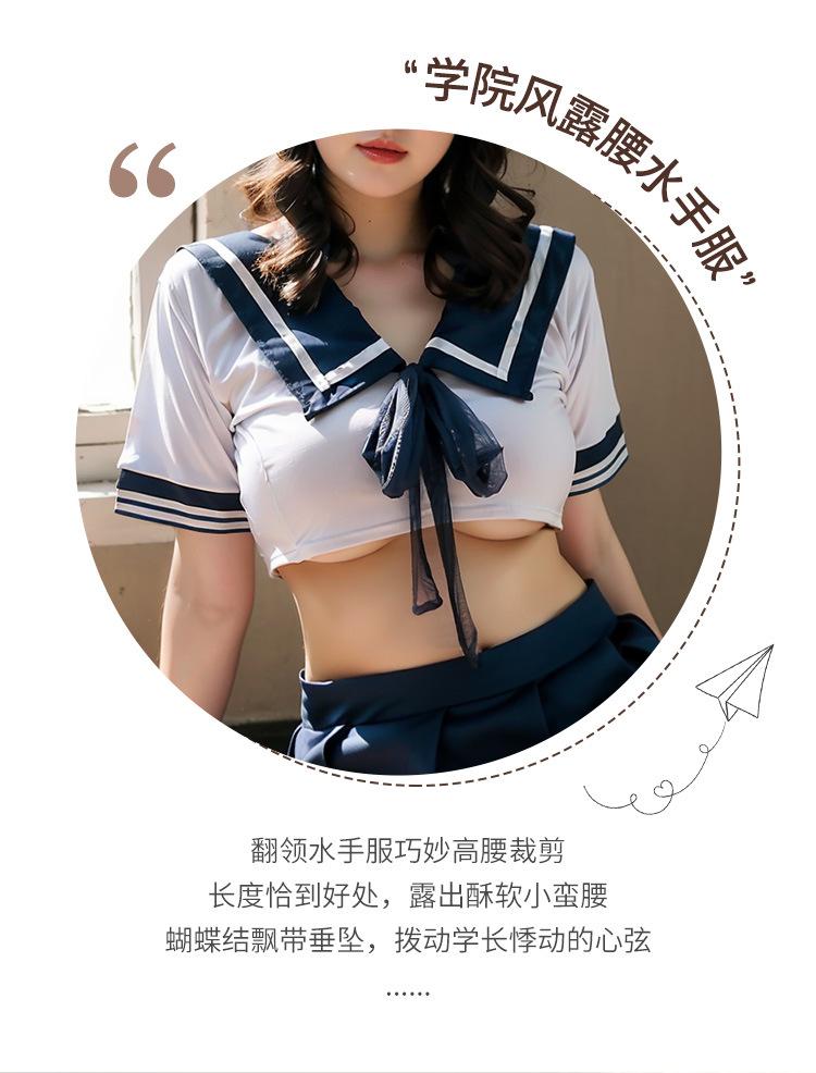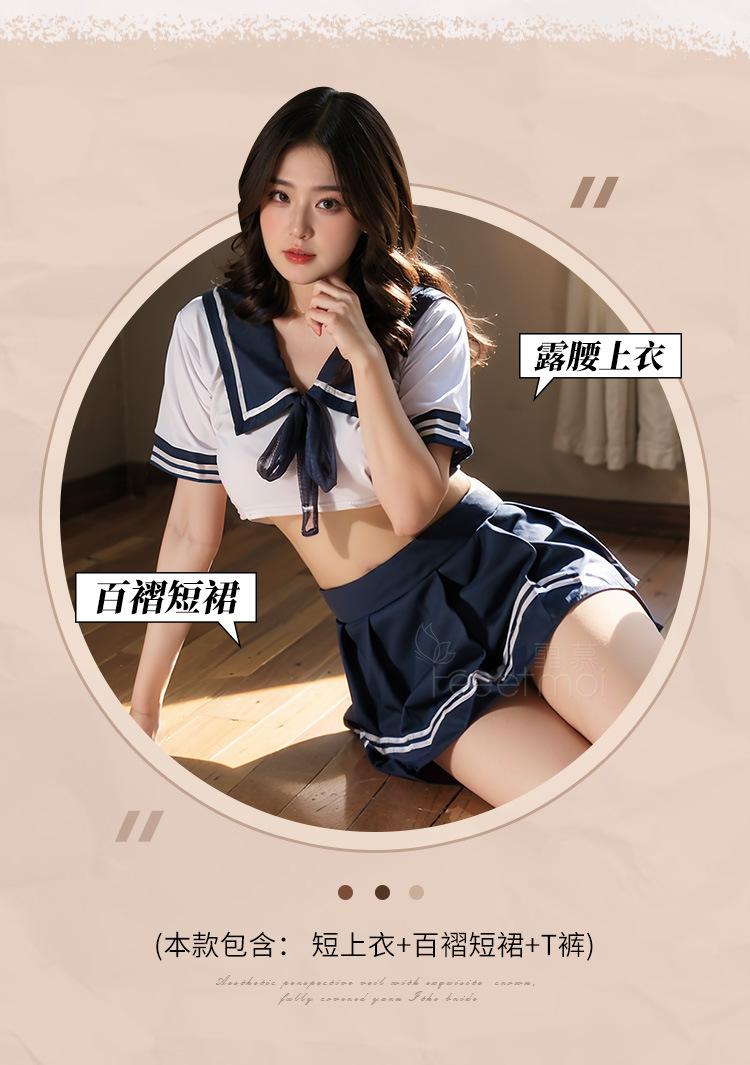 ◆Talla extra◆Azul oscuro + blanco [top corto + falda plisada + pantalón tipo camiseta] 6937486640649 (precio limitado: 29,9)