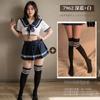◆Talla única◆Azul oscuro + blanco [top corto + falda plisada + pantalón tipo camiseta] + medias largas negras NY1XST000100 (precio limitado: 51,8)