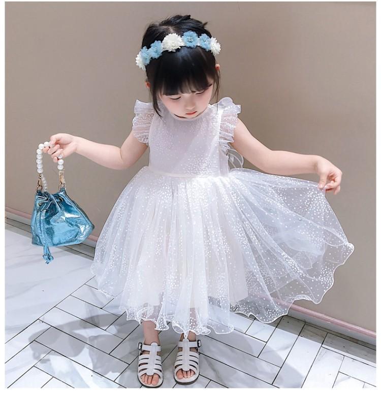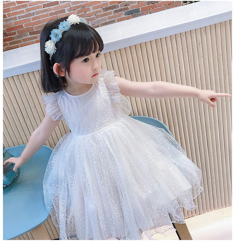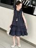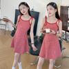 Vestido de verano de manga corta para niñas, nuevo 2024, falda chaleco, falda de tul, estilo coreano, falda chaleco, algodón
