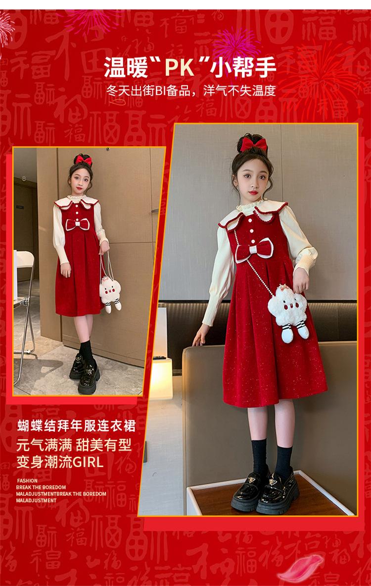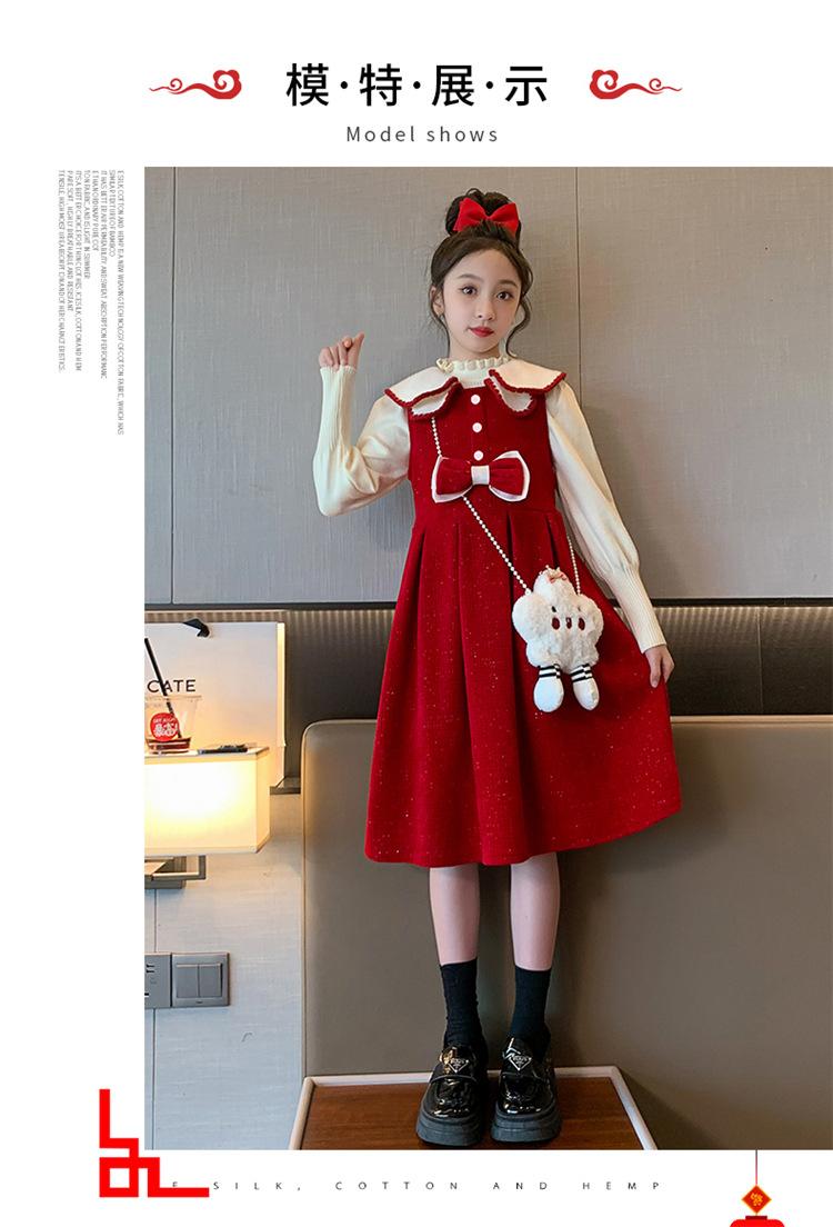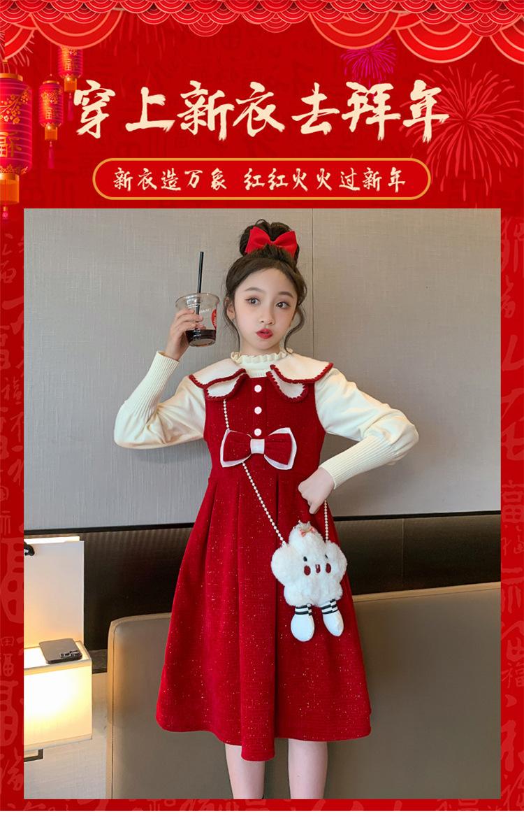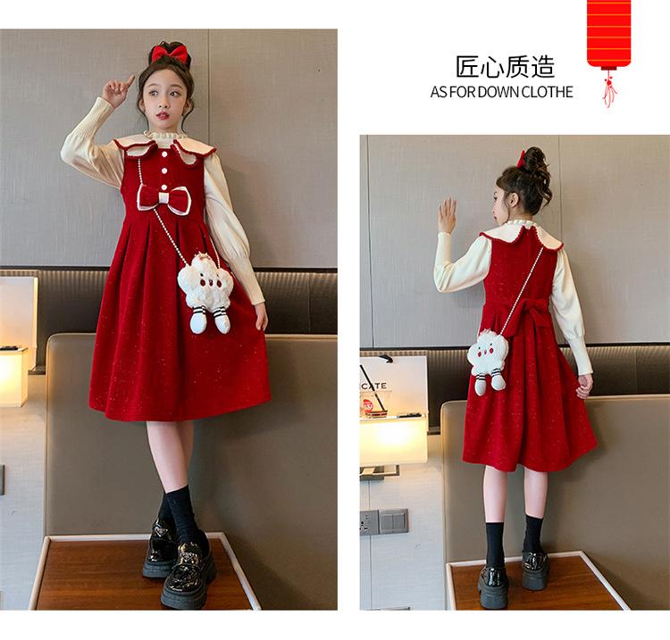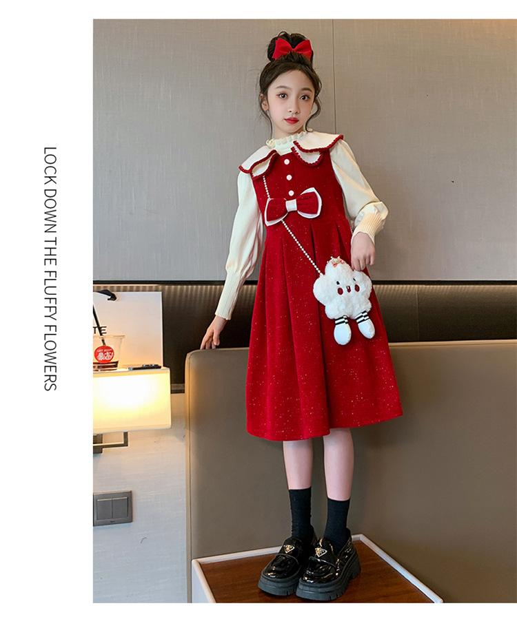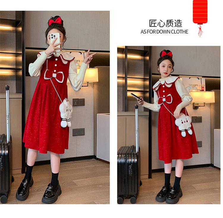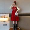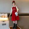 Vestido de niña otoño e invierno nuevo jersey vestido de princesa moda de dos piezas falda chaleco rojo para niños