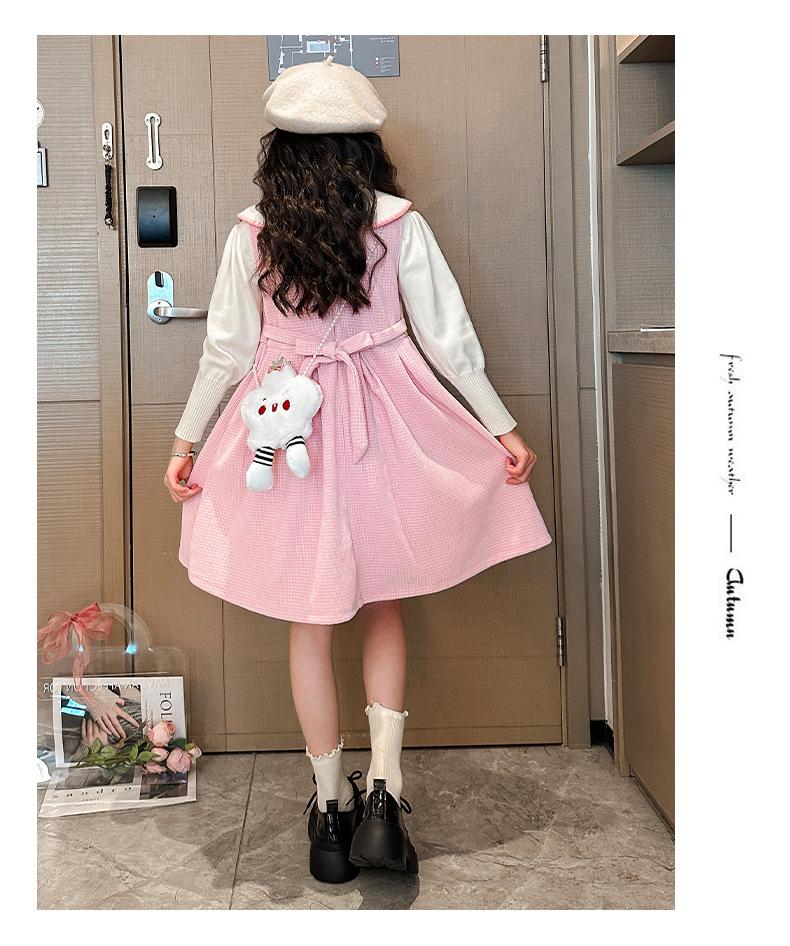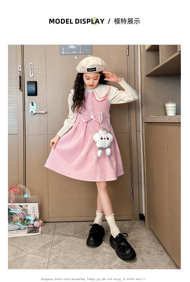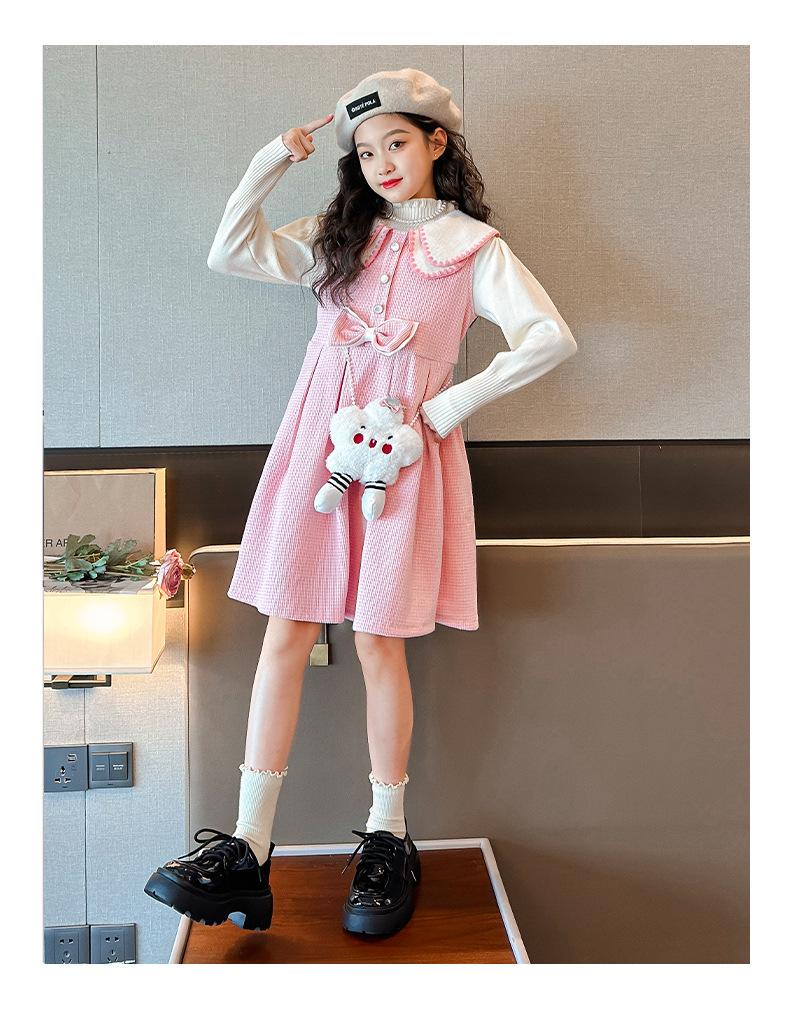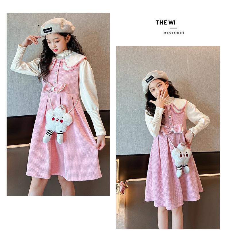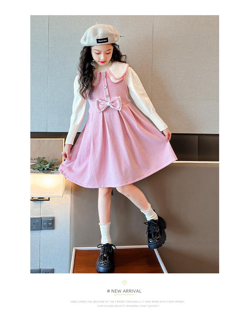 Vestido de niña otoño e invierno nuevo jersey vestido de princesa moda de dos piezas falda chaleco rojo para niños