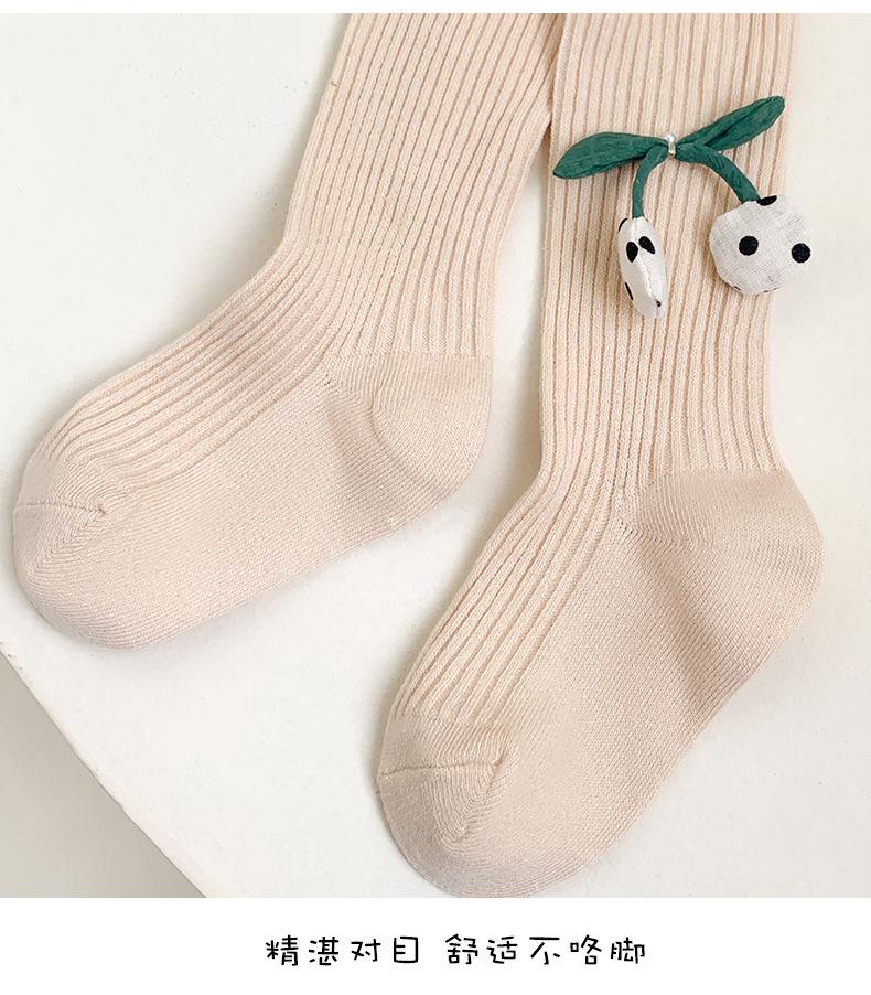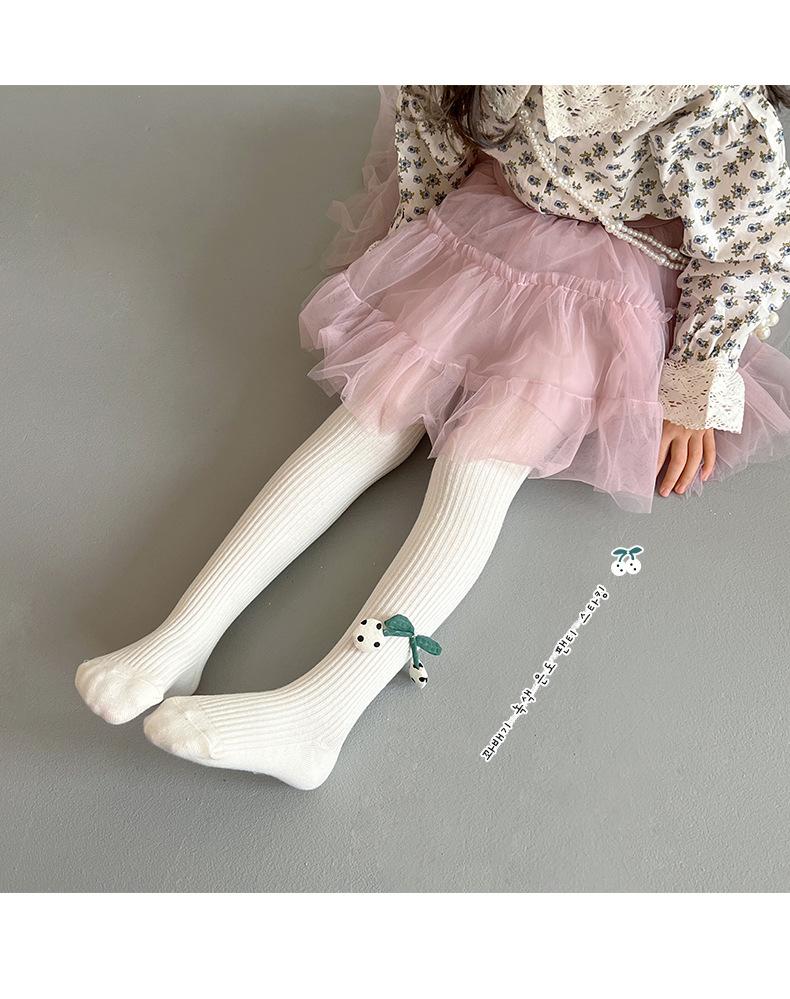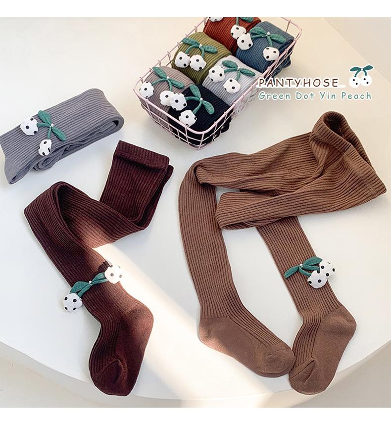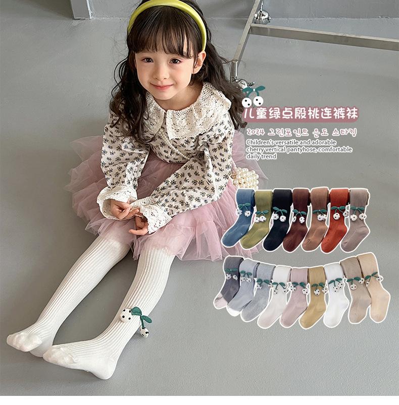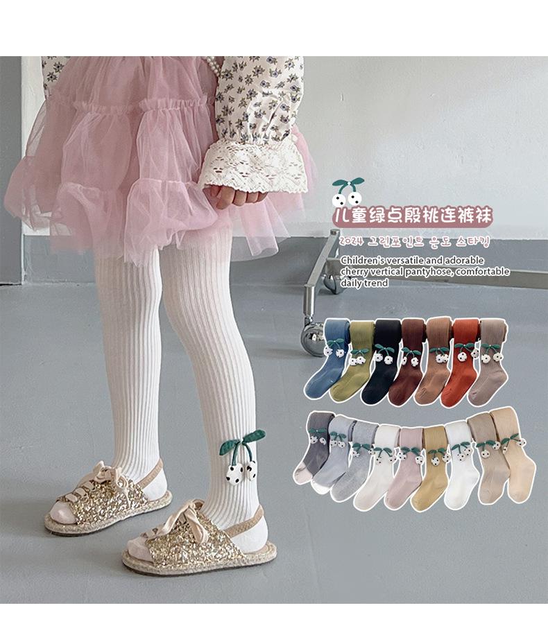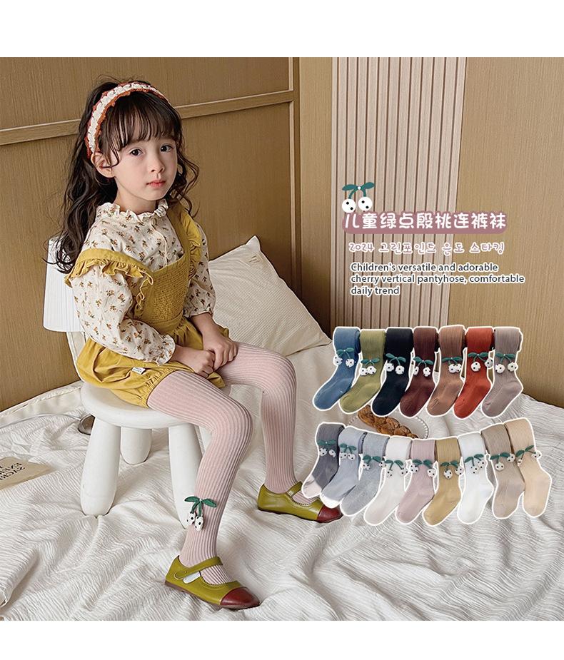 Venta al por mayor de nuevos leggings para niños, calcetines, ropa exterior, rayas verticales, puntos verdes, cerezas, niñas, primavera y otoño, medias finas de algodón