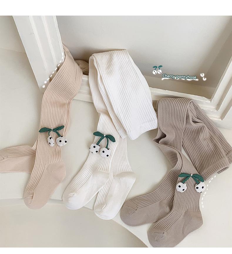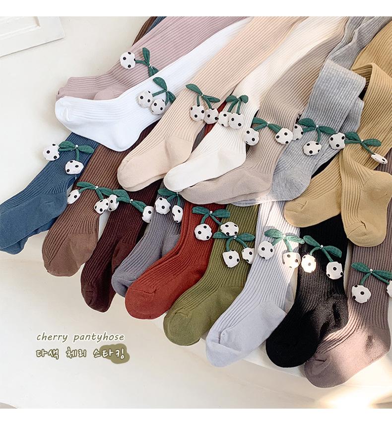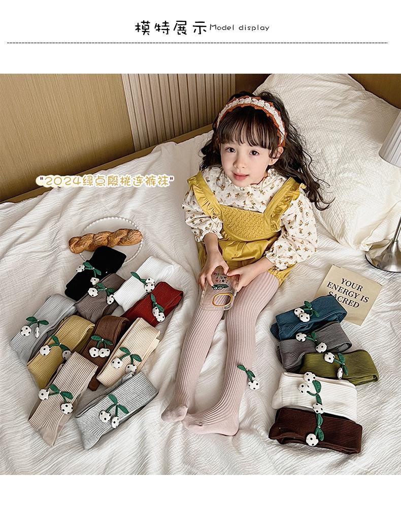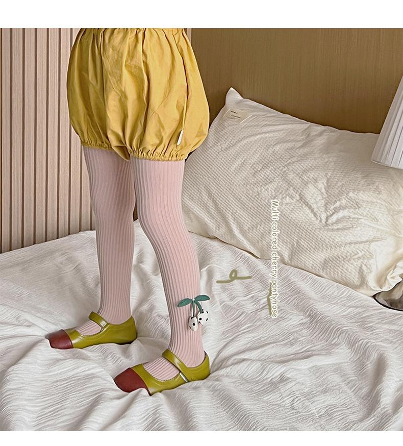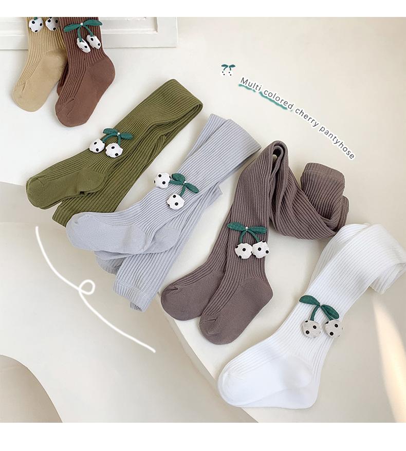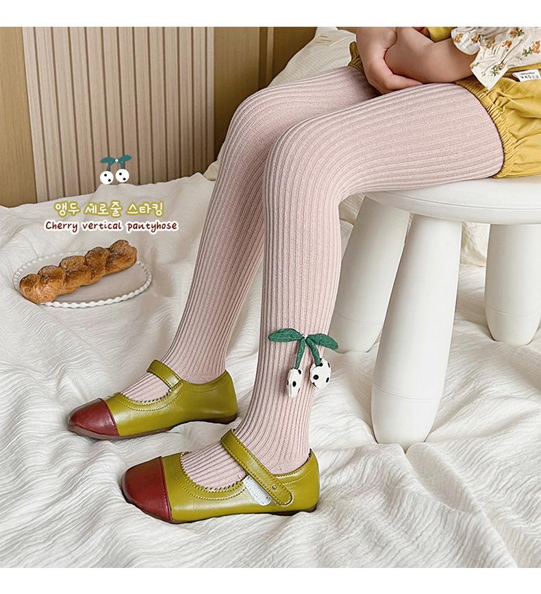 Venta al por mayor de nuevos leggings para niños, calcetines, ropa exterior, rayas verticales, puntos verdes, cerezas, niñas, primavera y otoño, medias finas de algodón
