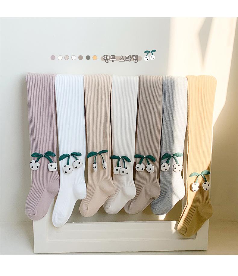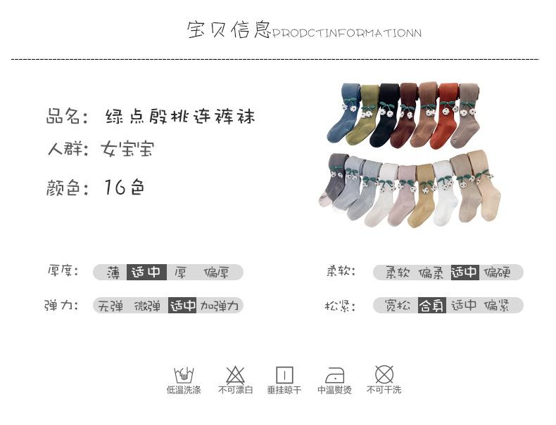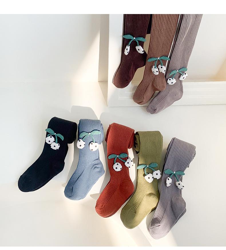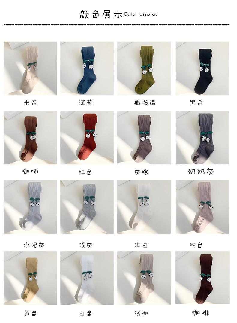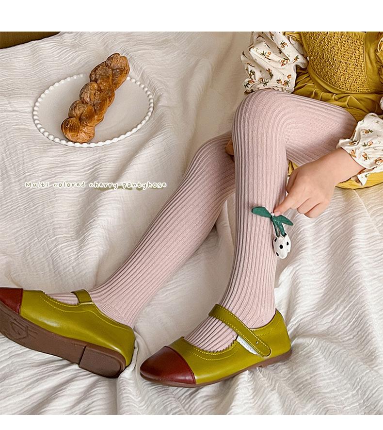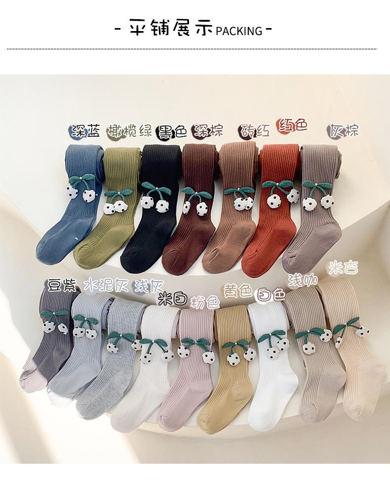 Venta al por mayor de nuevos leggings para niños, calcetines, ropa exterior, rayas verticales, puntos verdes, cerezas, niñas, primavera y otoño, medias finas de algodón