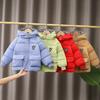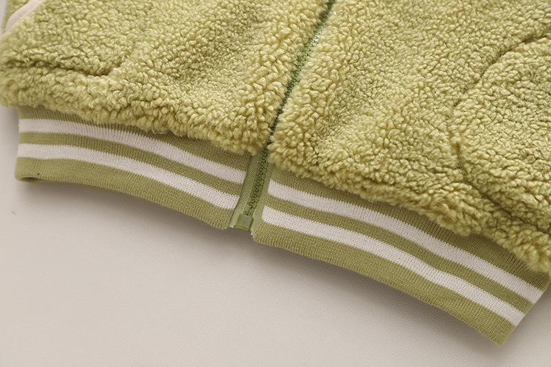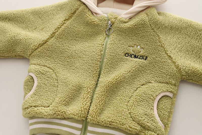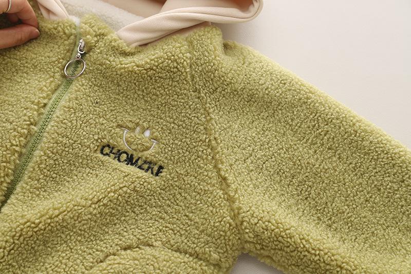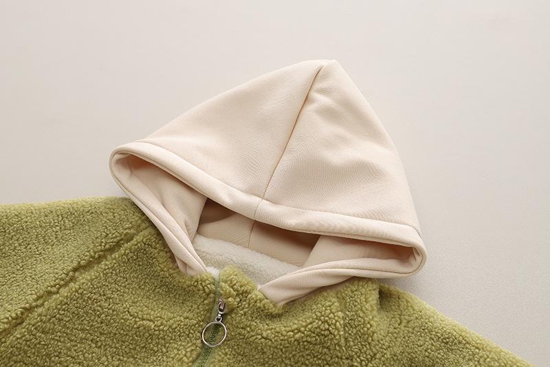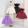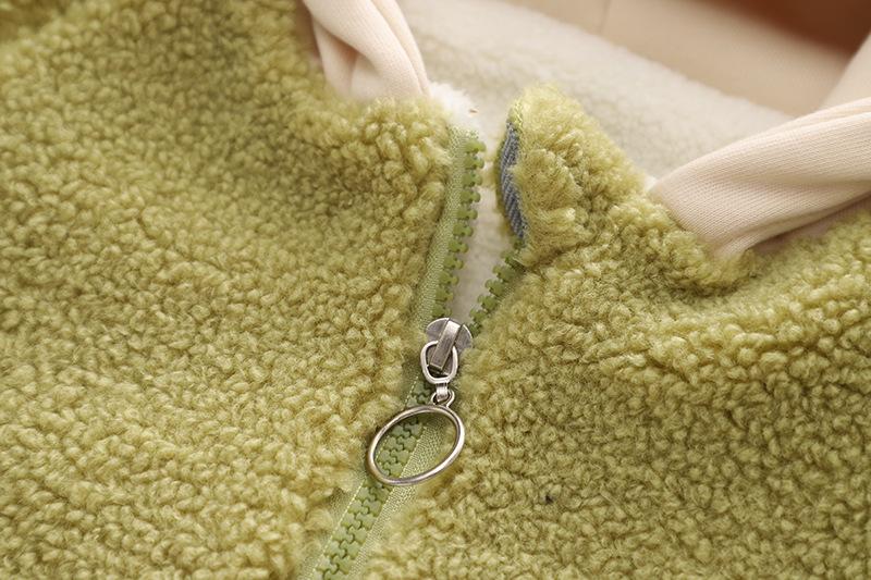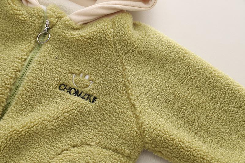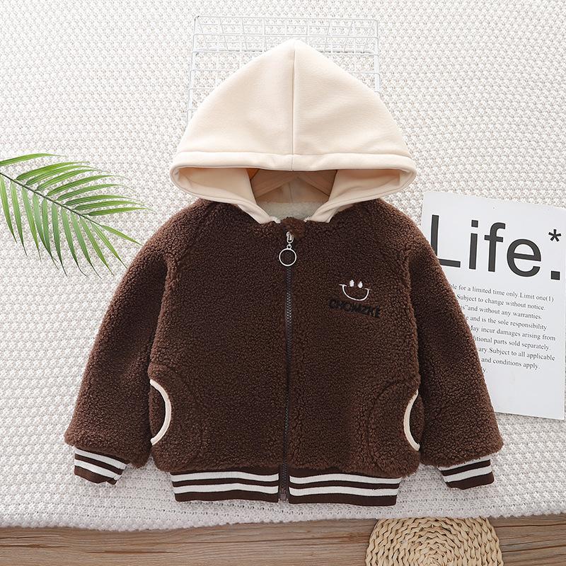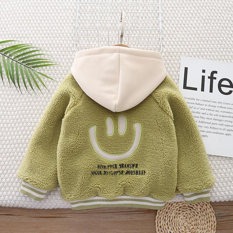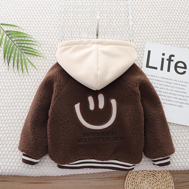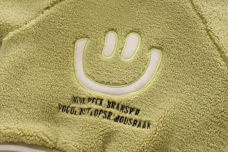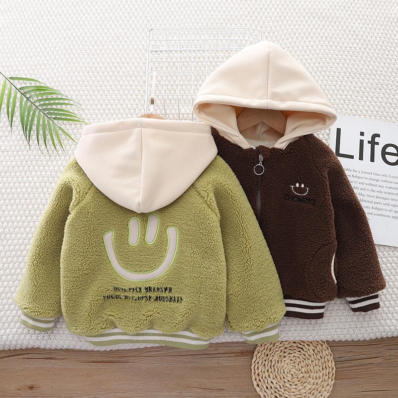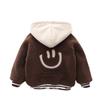 Ropa de invierno para niños y niñas con forro polar de color sólido, abrigo con cara sonriente, capucha gruesa, deportiva, cálida, con cremallera, venta al por mayor