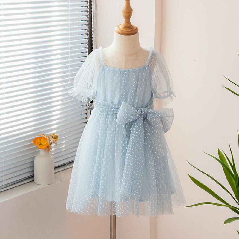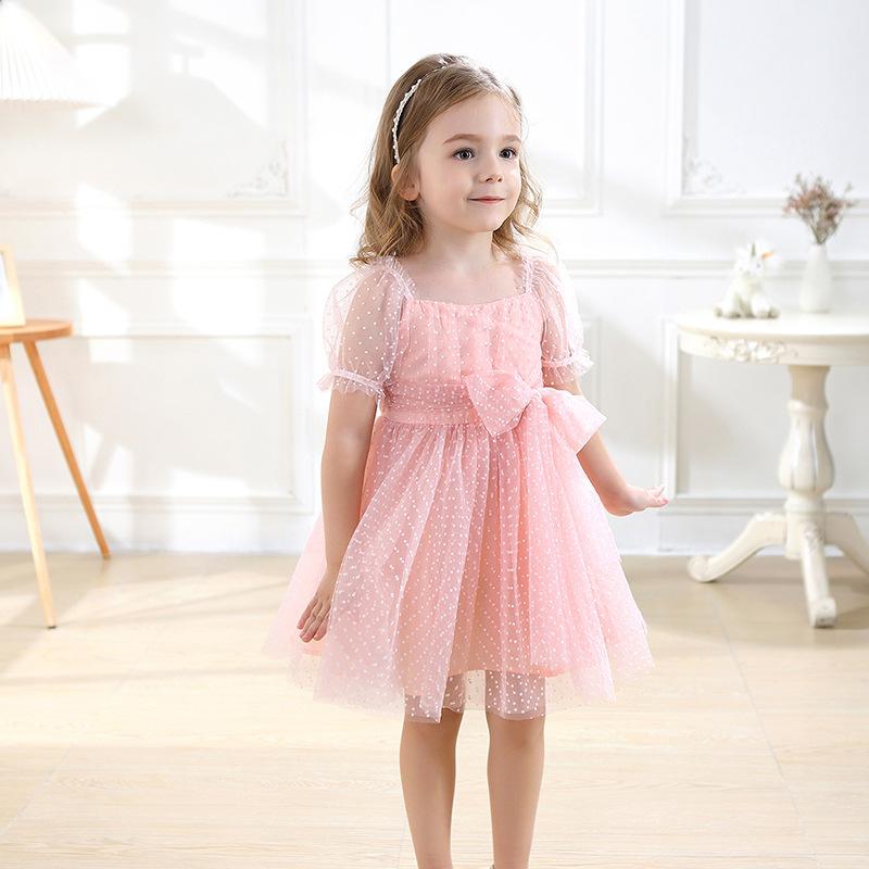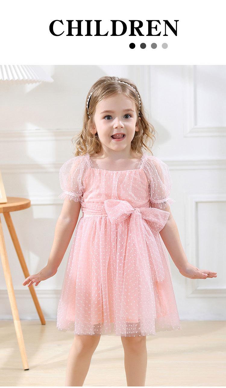 Vestido de verano para niñas, vestido de bebé de año nuevo 2024, vestido de princesa de malla para niños de estilo occidental, vestido de verano para niños
