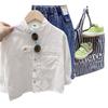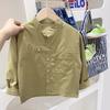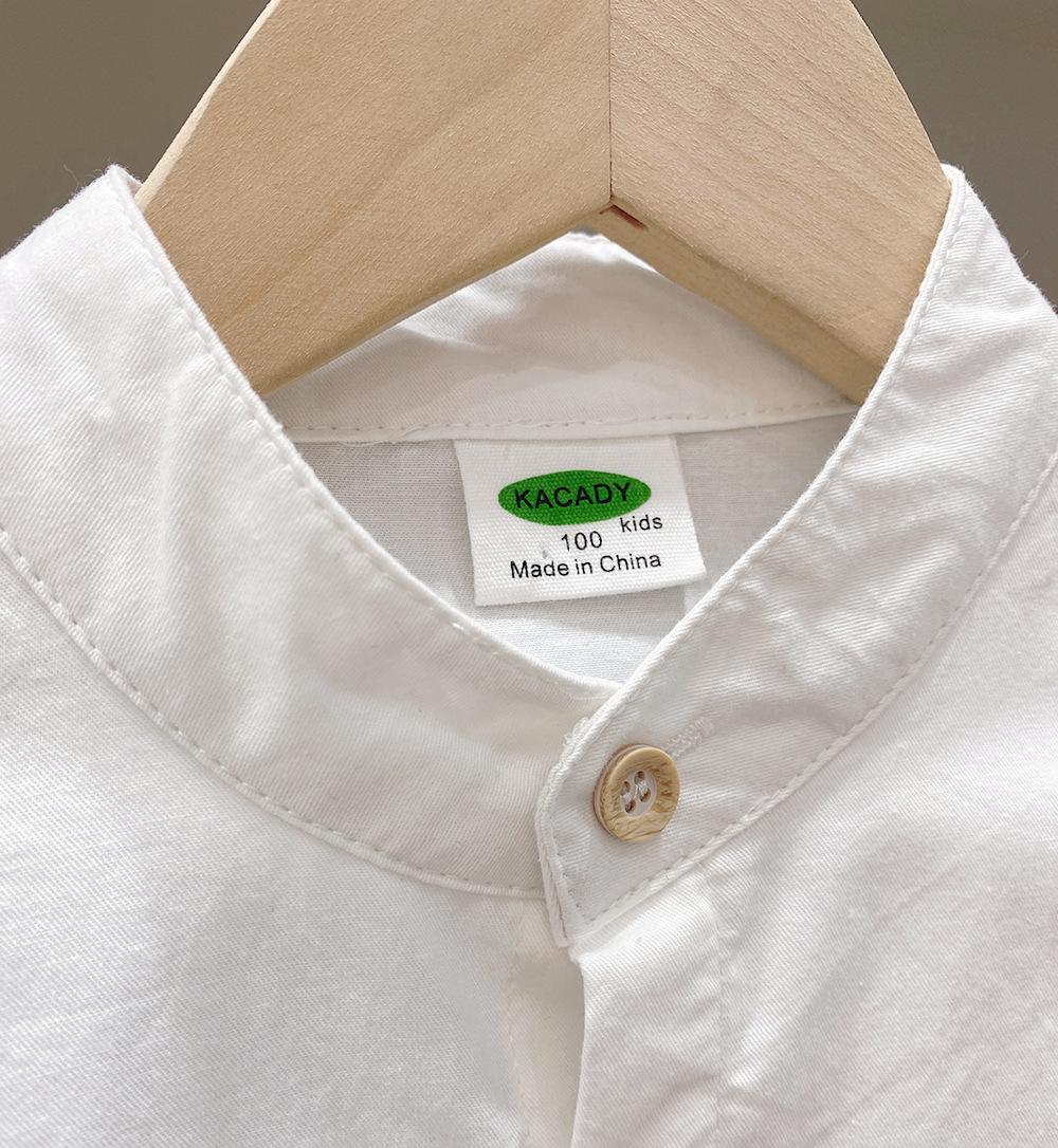 Ropa de otoño para niños, camisa de algodón con cuello alto, sencilla, de manga larga, venta al por mayor, 2023