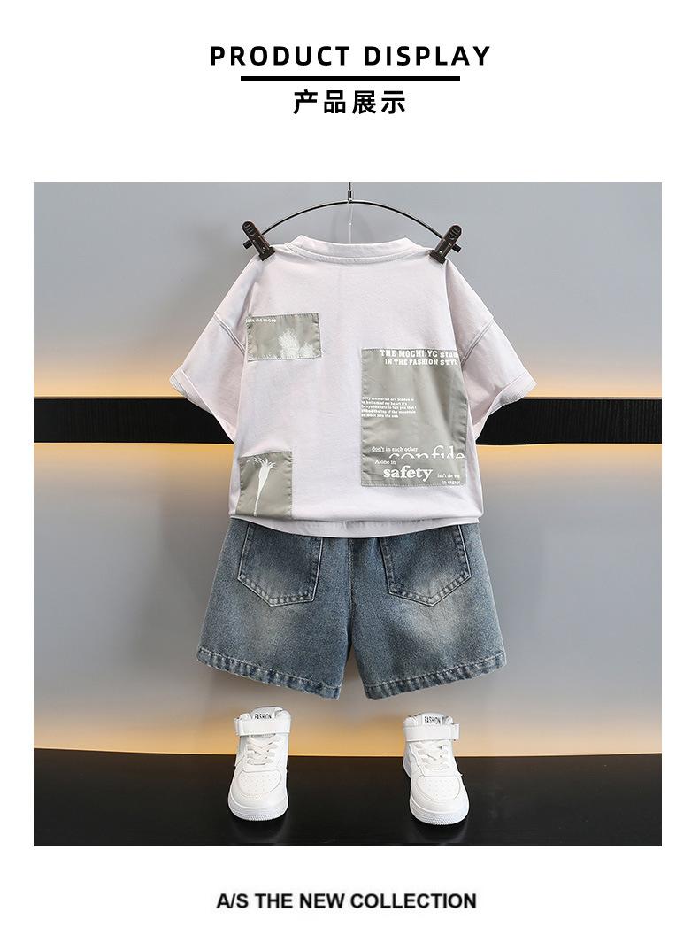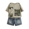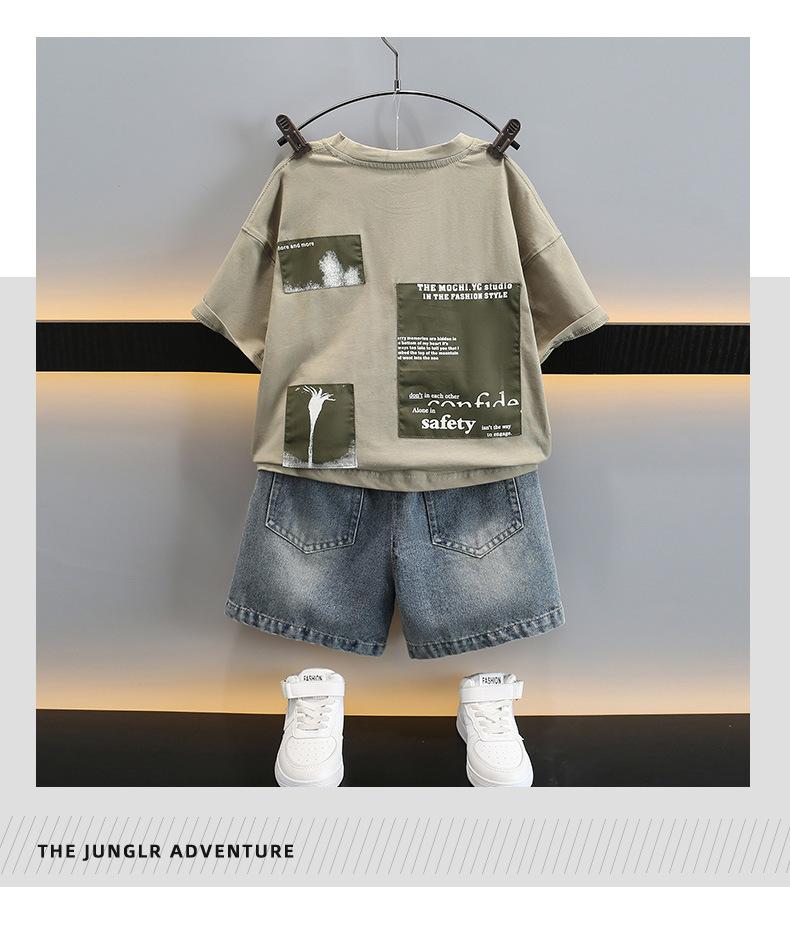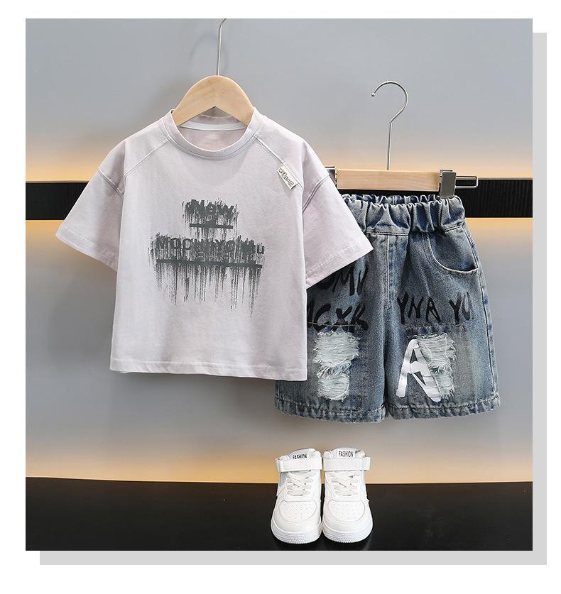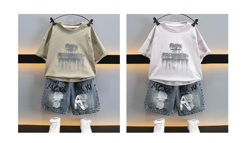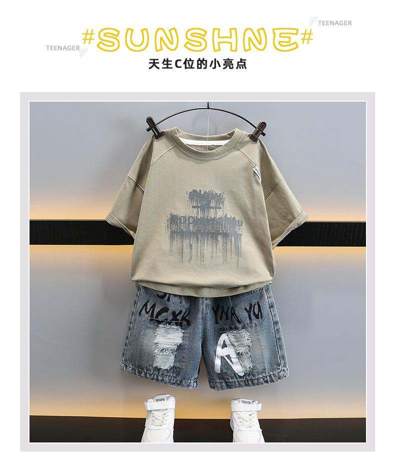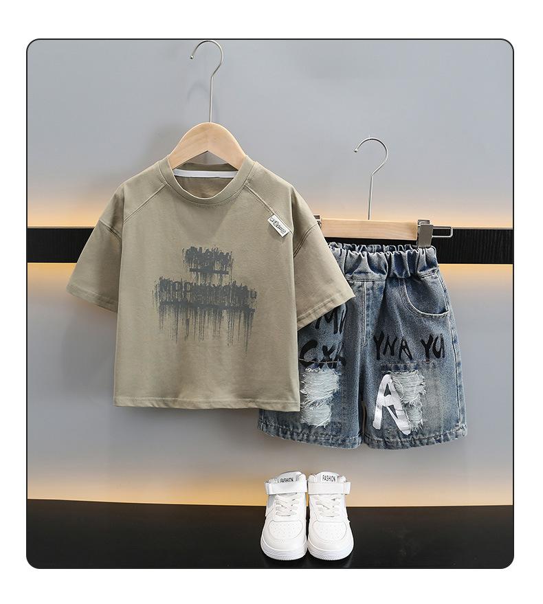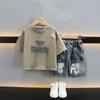 Ropa para Niños Traje de Verano de Manga Corta para Niños 2025 Nuevo Estilo Niños Pequeños y Medianos Verano para Niños Delgado Estilo Deportivo Guapo