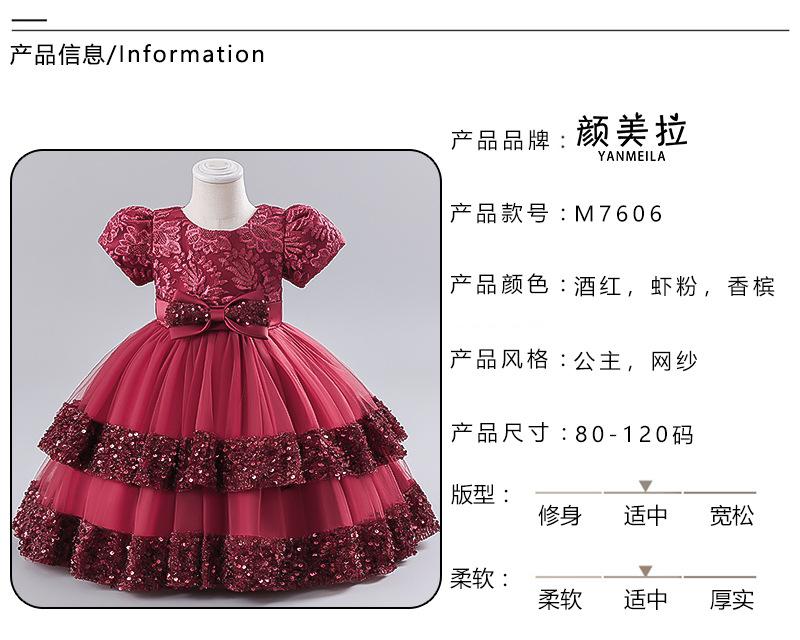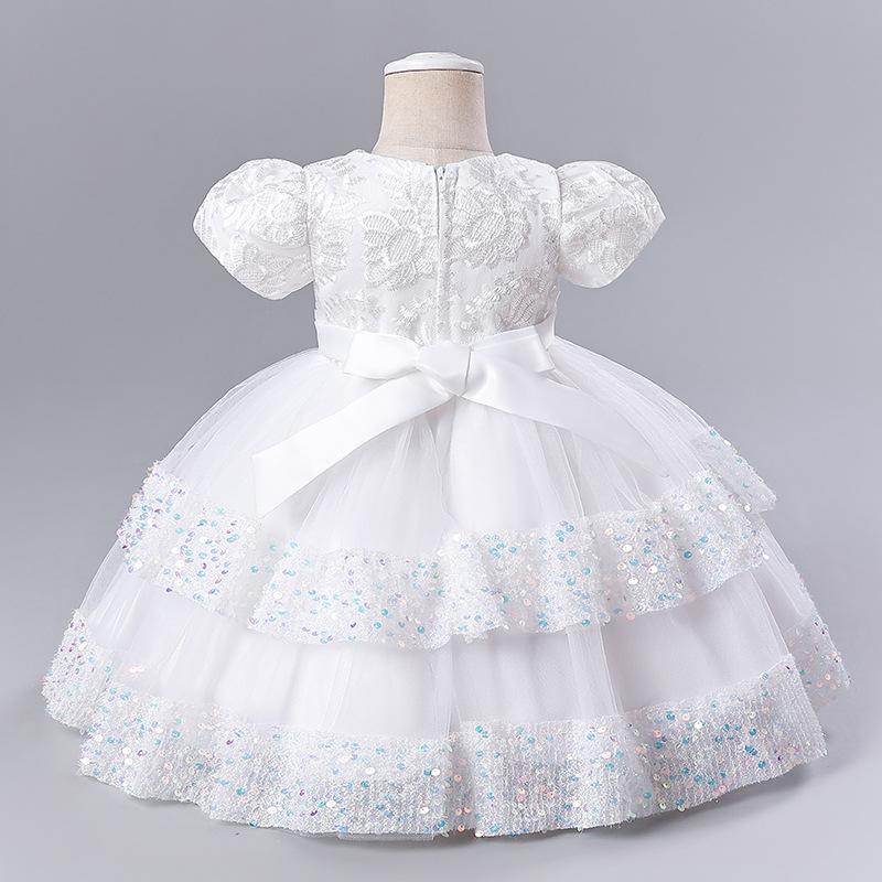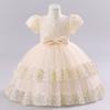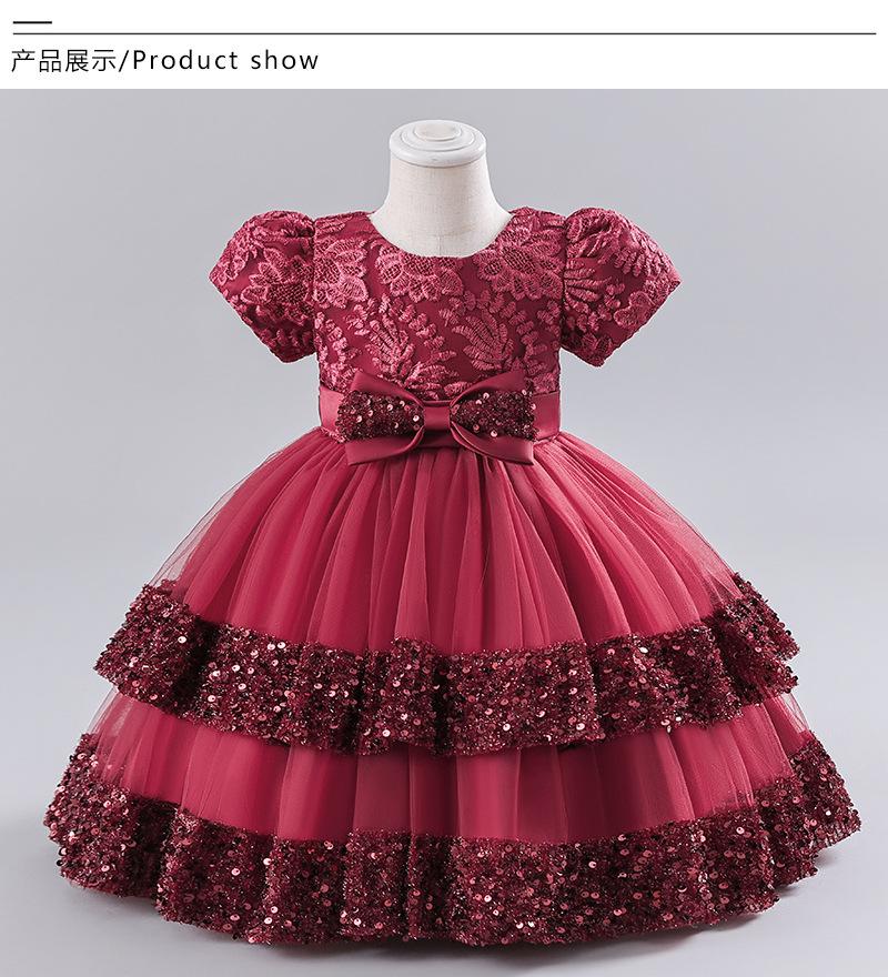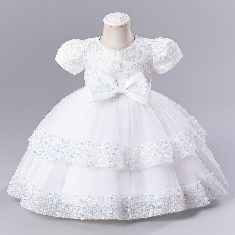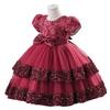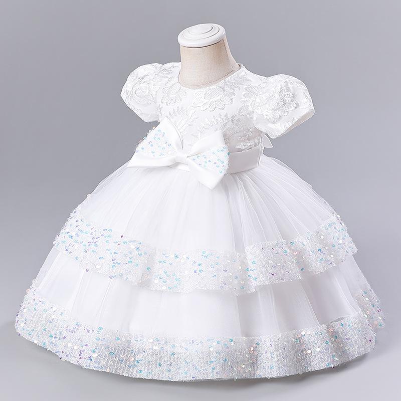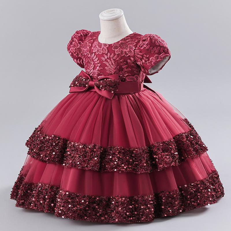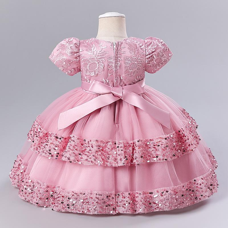 Vestido para niñas, vestido bordado con lentejuelas y lazo, manga corta, falda de princesa abullonada, venta al por mayor con punto transfronterizo
