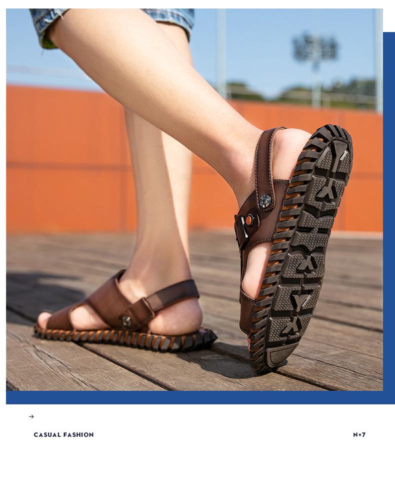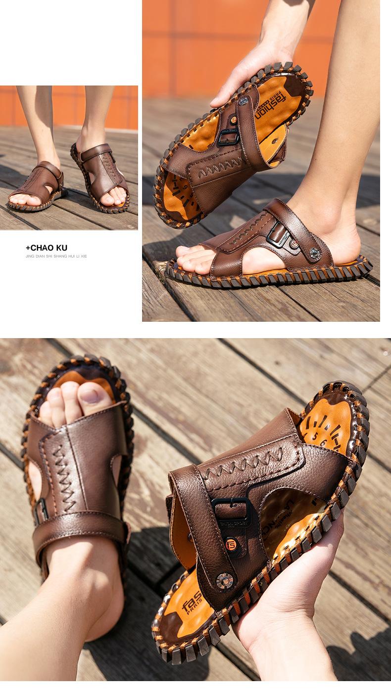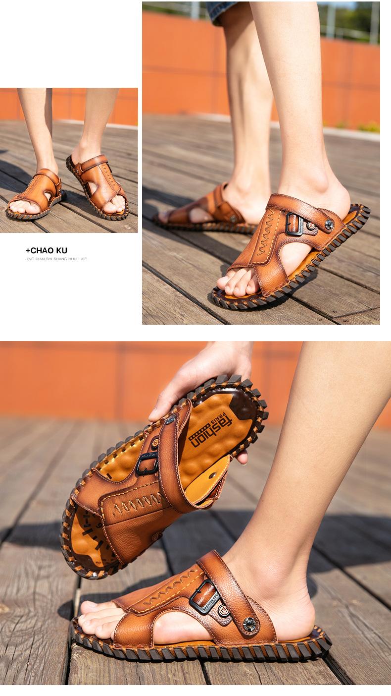 Sandalias de moda 2024 para hombre de cuero genuino verano nuevas zapatos de playa antideslizantes para exteriores sandalias zapatos casuales de doble uso para hombre