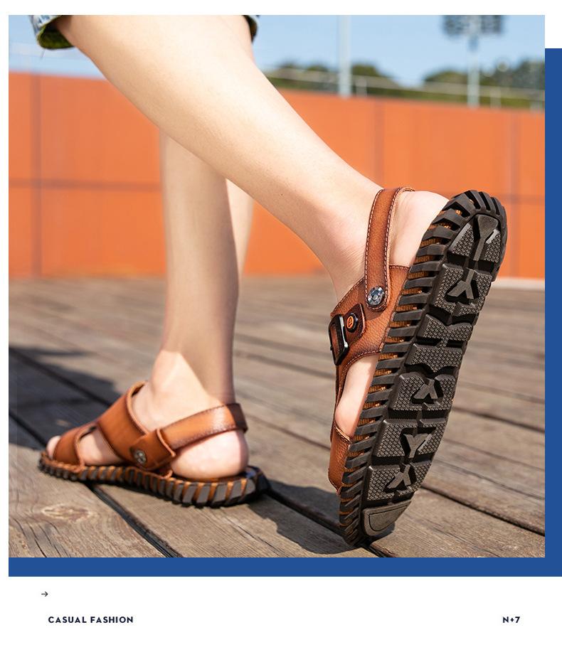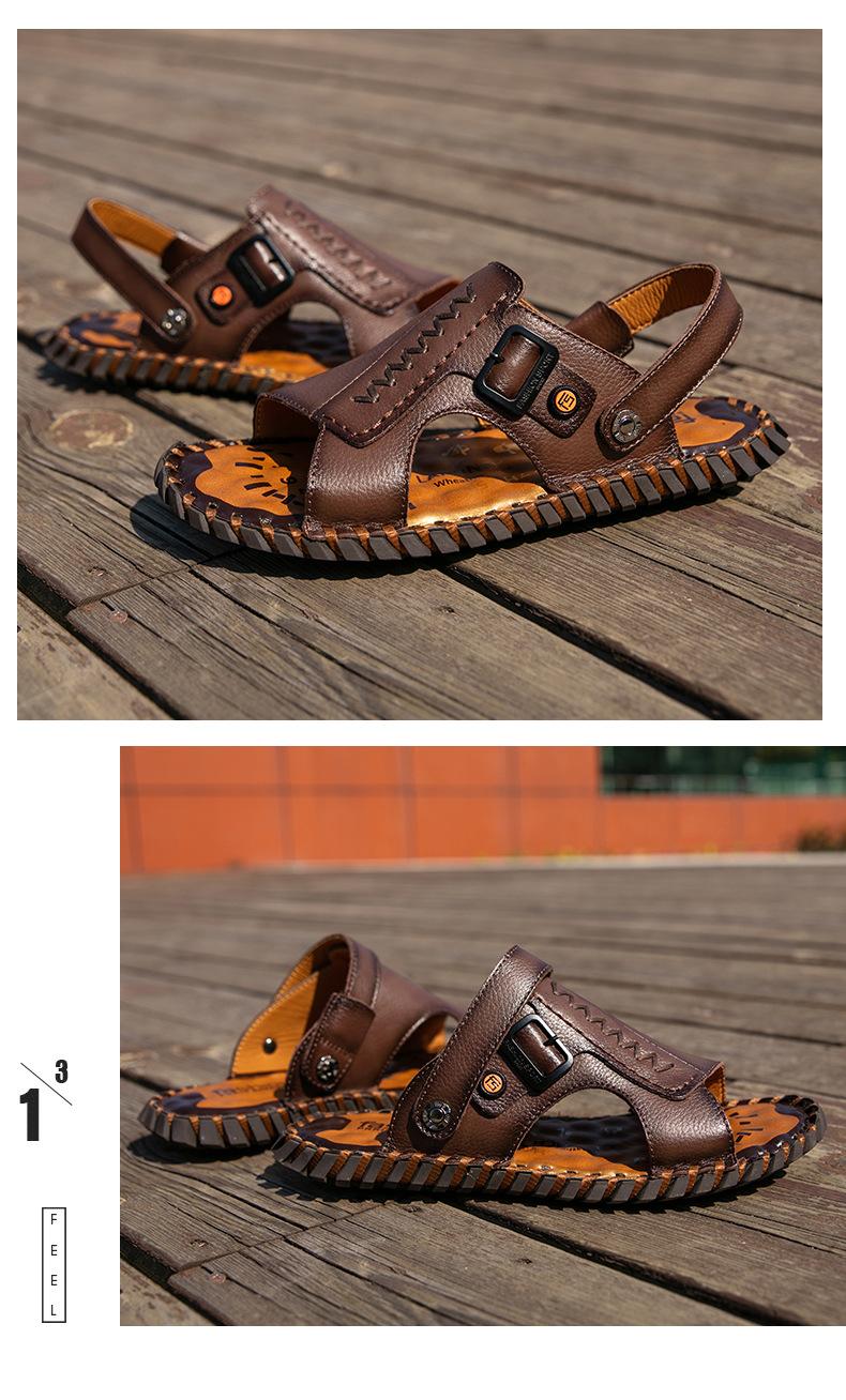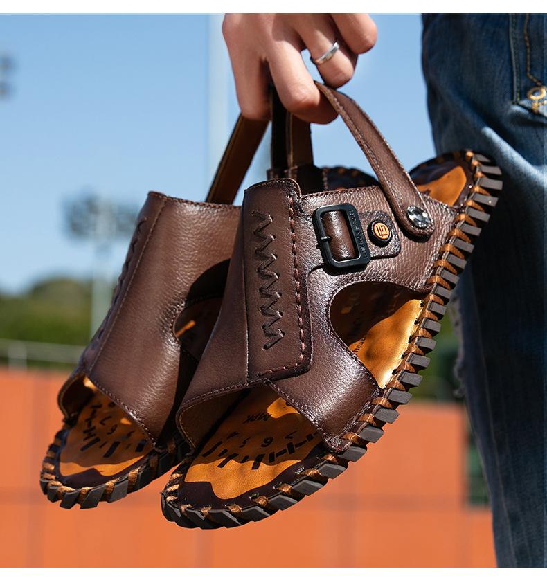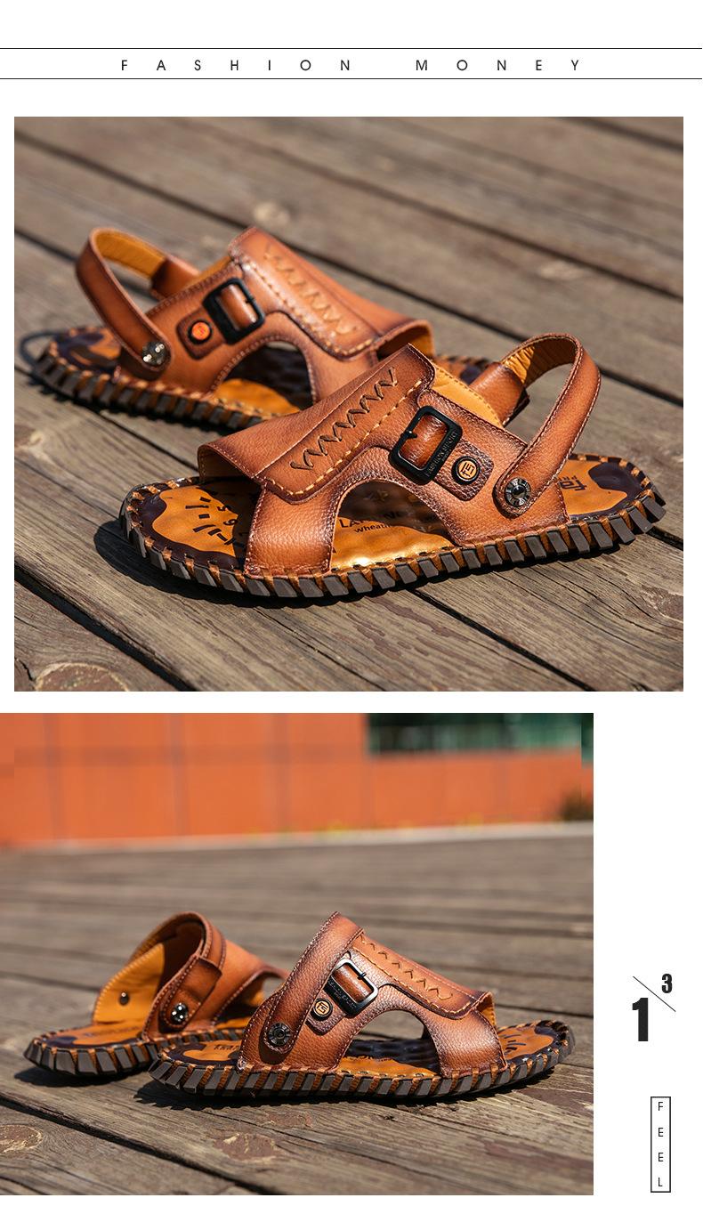Sandalias de moda 2024 para hombre de cuero genuino verano nuevas zapatos de playa antideslizantes para exteriores sandalias zapatos casuales de doble uso para hombre