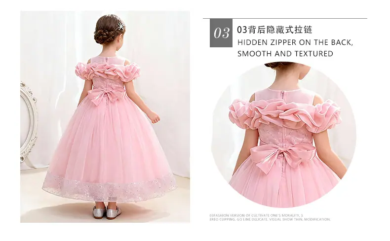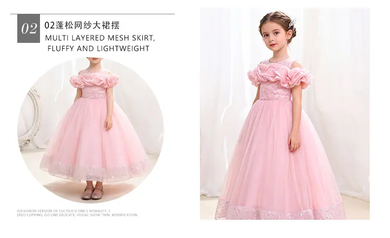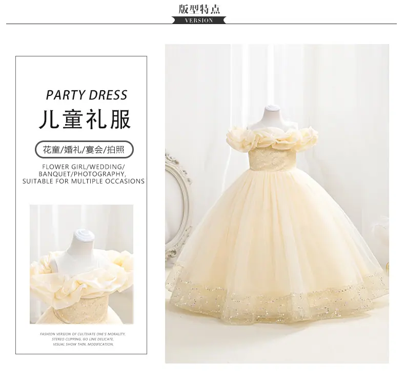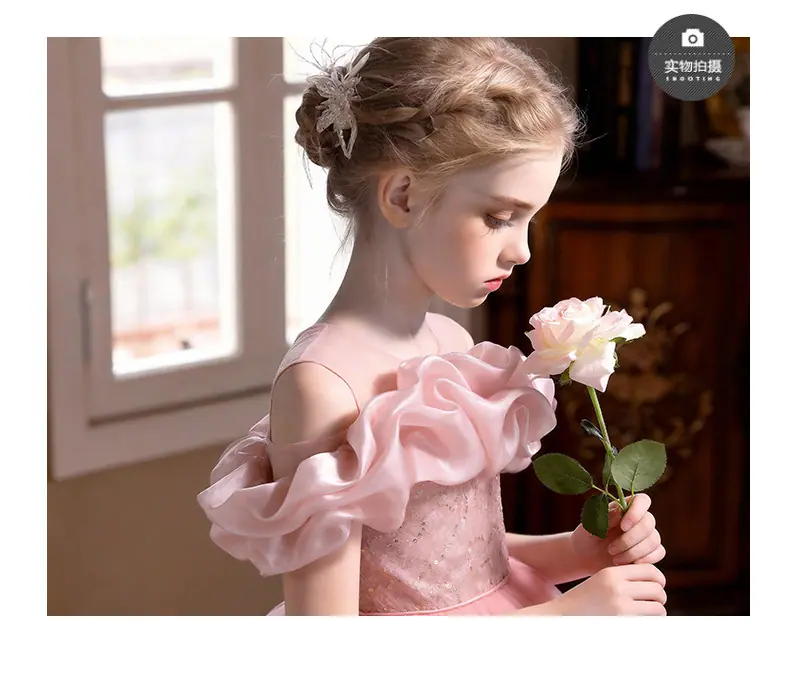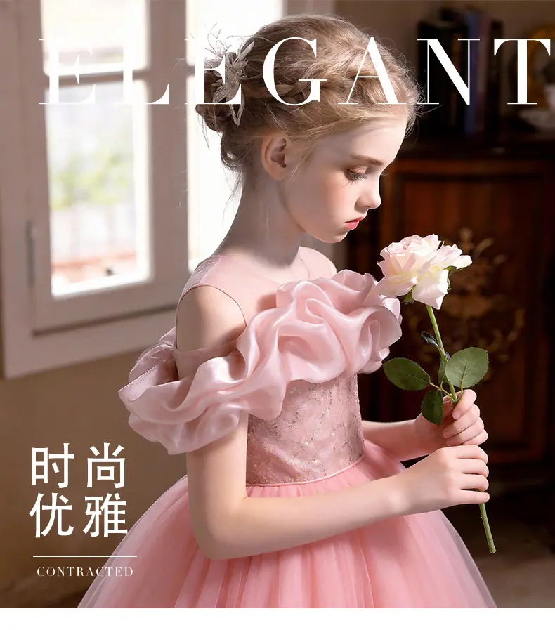 Vestido Formal para Niña Vestido de Princesa de Gama Alta Vestido de Dama de Honor de Boda Vestido de Novia para Niña Traje de Presentación en Piano de Pasarela Blanco Vestido Formal para Niños Ropa Europea para Niños